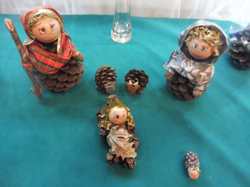 en aquest cas la base de les figures són pinyes. Cal dir que les fotografies no copsen la realitat ja que cada figureta és una petita obra d’art plena de detalls que enamoren.