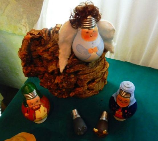 Com podeu vure aquest pessebre està fet amb bombetes totalment pintades. La Paquita demostra tenir una habilitat extraordinària per la pintura i les expressions del rostre de les figures, fetes amb traços senzills, són una passada.