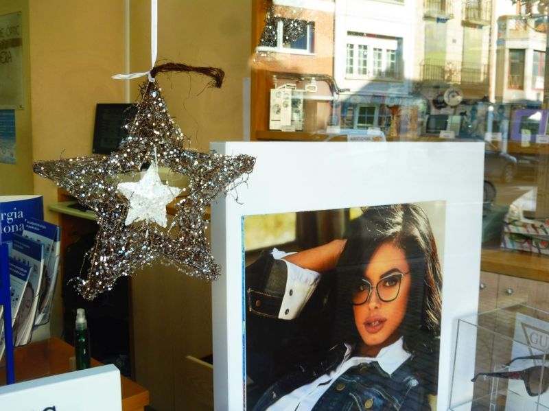 Al fer les fotografies de dia els edificis es colen als aparadors. És un plus d’encant a les ofertes d’Òptica Riera.
