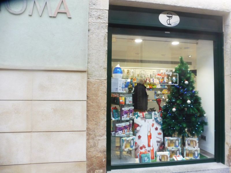 De Farmàcia Gomá ens enamora la delicadesa d’aquestes boles de vidre que contrasten amb la pedra de les llindes. És el primer any qye celebra les festes en aquest nou establiment que ocupa tot l’edifi i que ha quedat fantàstic.