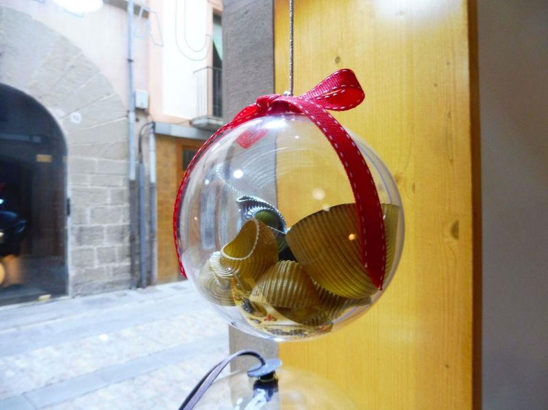 A la Moderna les boles que decoren l’aparador estan fetes manualment amb llanes de colors. Encara que aquí no es vegin molt bé per l’invasió dels edificis del davant via vidre, resulten molt boniques.
