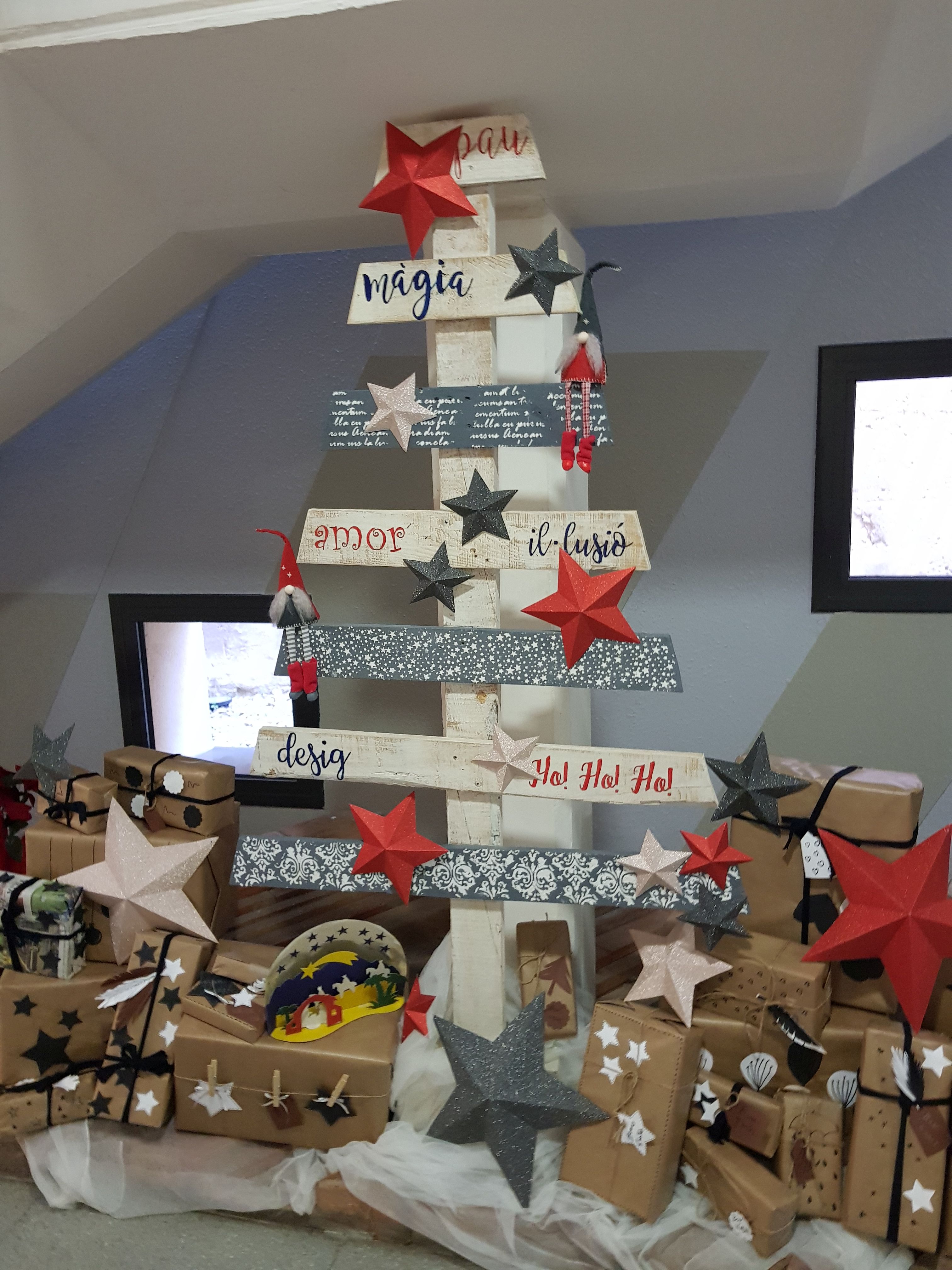 Al Centre Cívic també s’hi podia admirar una bonica composició presidida per un original arbre. Els paquets que hi tenia al costat feien molt goig ja que estaven embolicats amb molt gust.