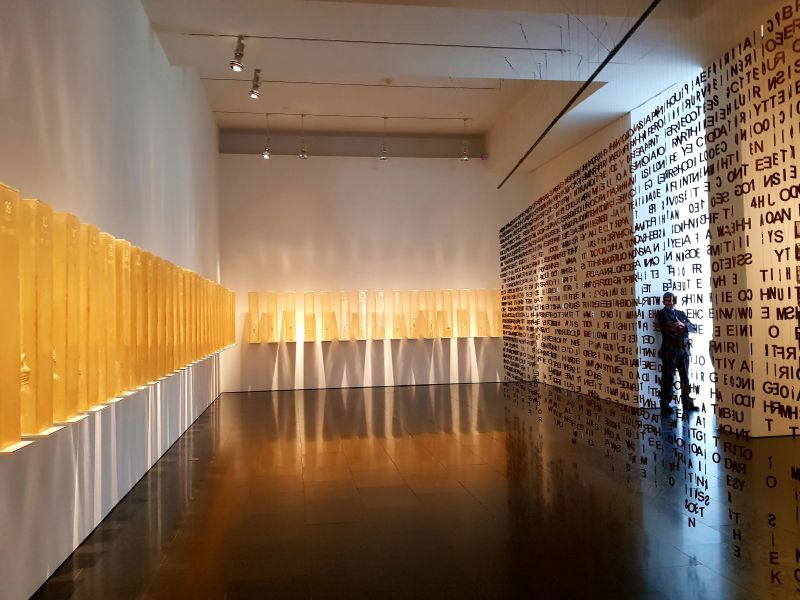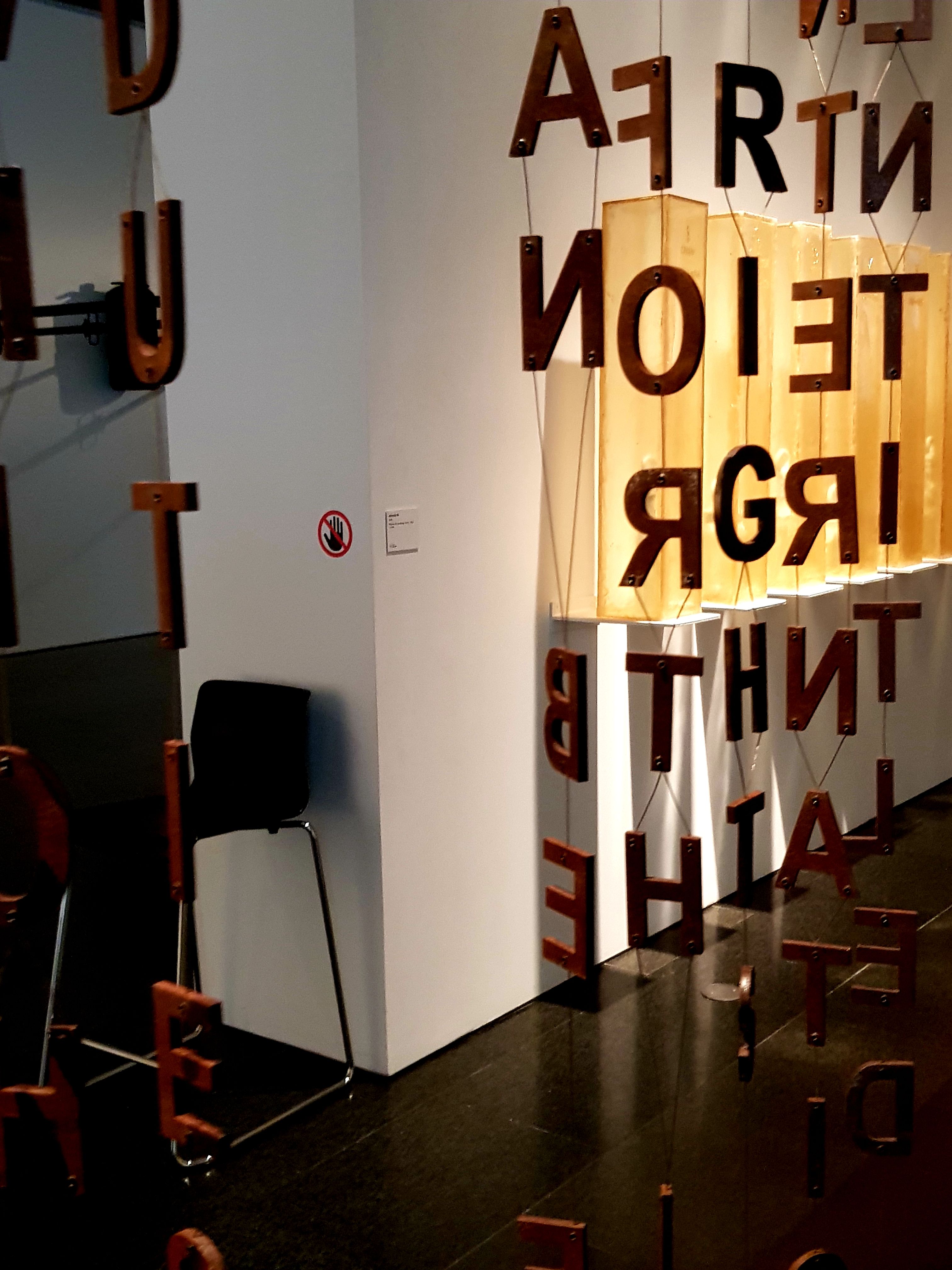 Resulta espectacular la cortina referencial a l’humà que porta per nom Glückauf? i que està feta amb el text literal de la Declaració Universal dels Drets Humans aprovada per les Nacions Unides l’any 1948.