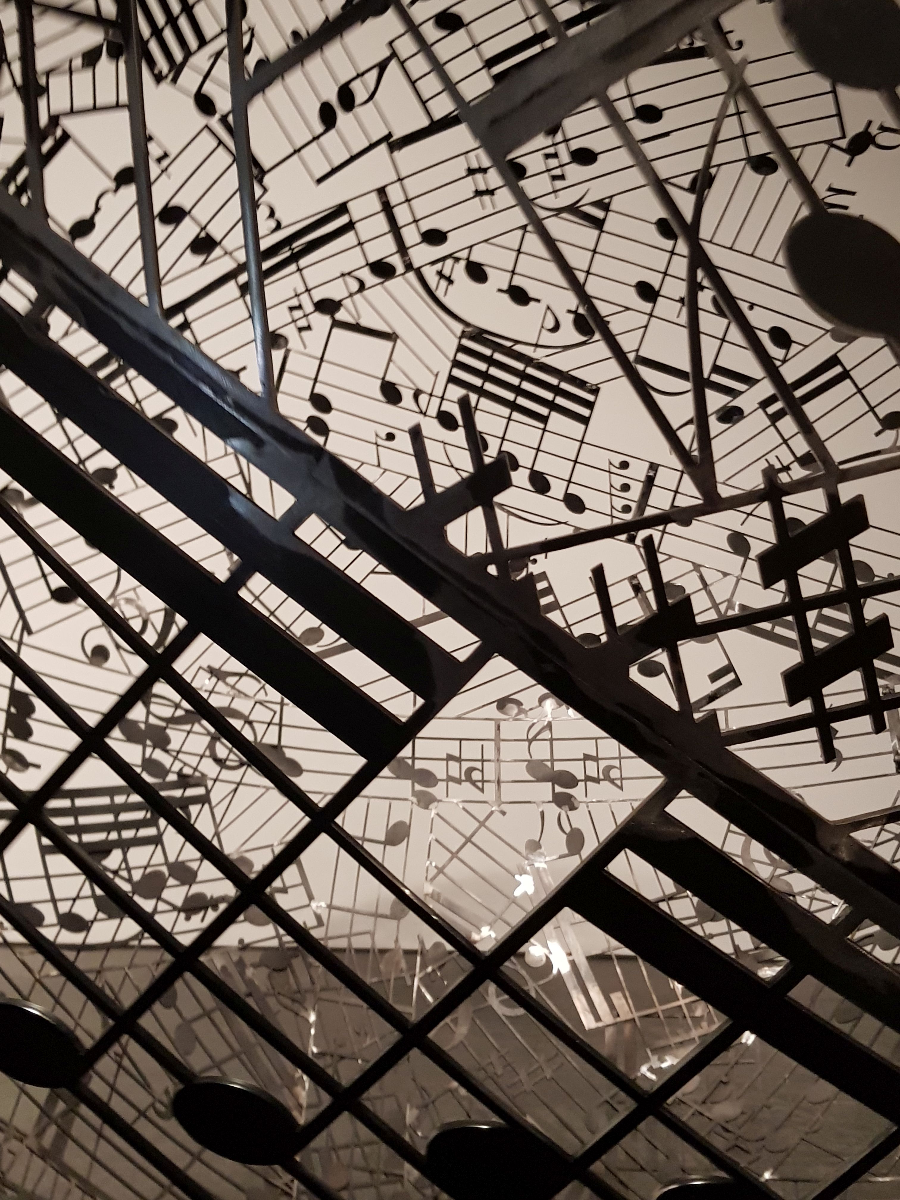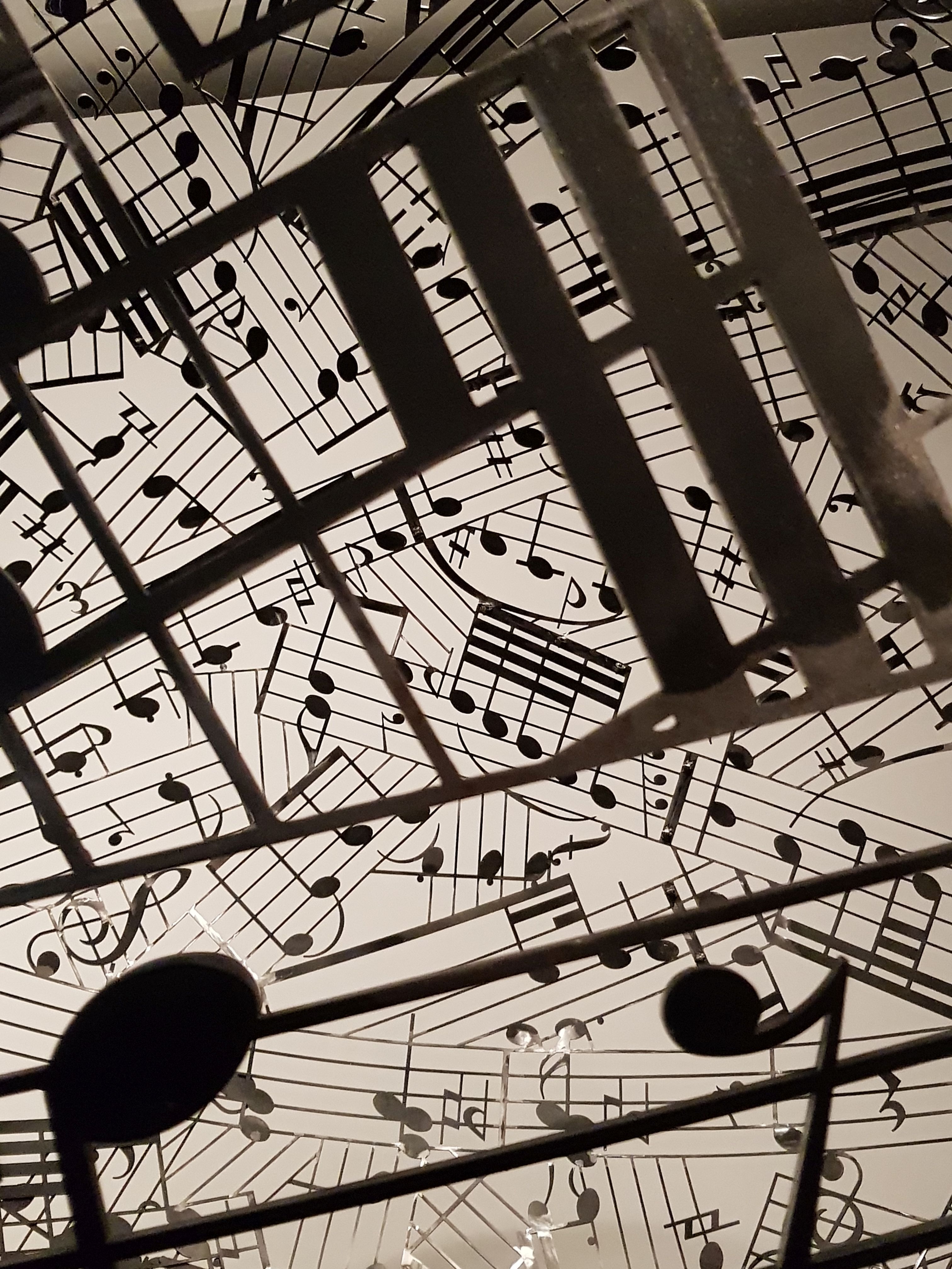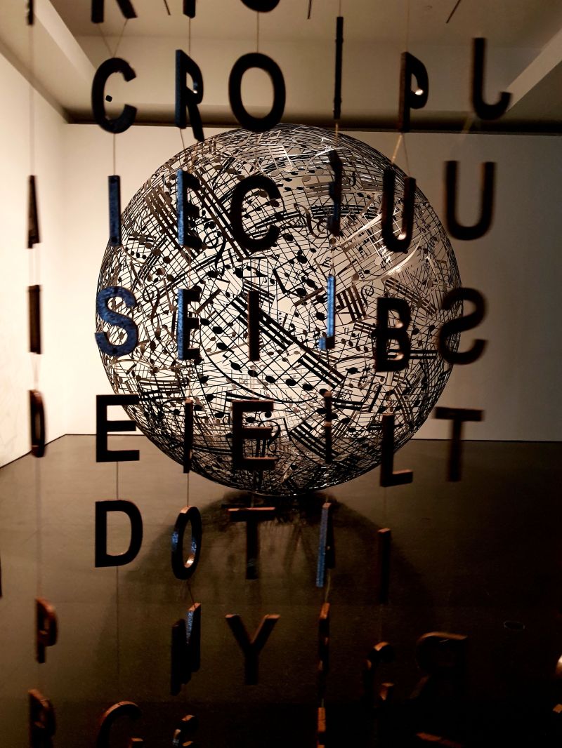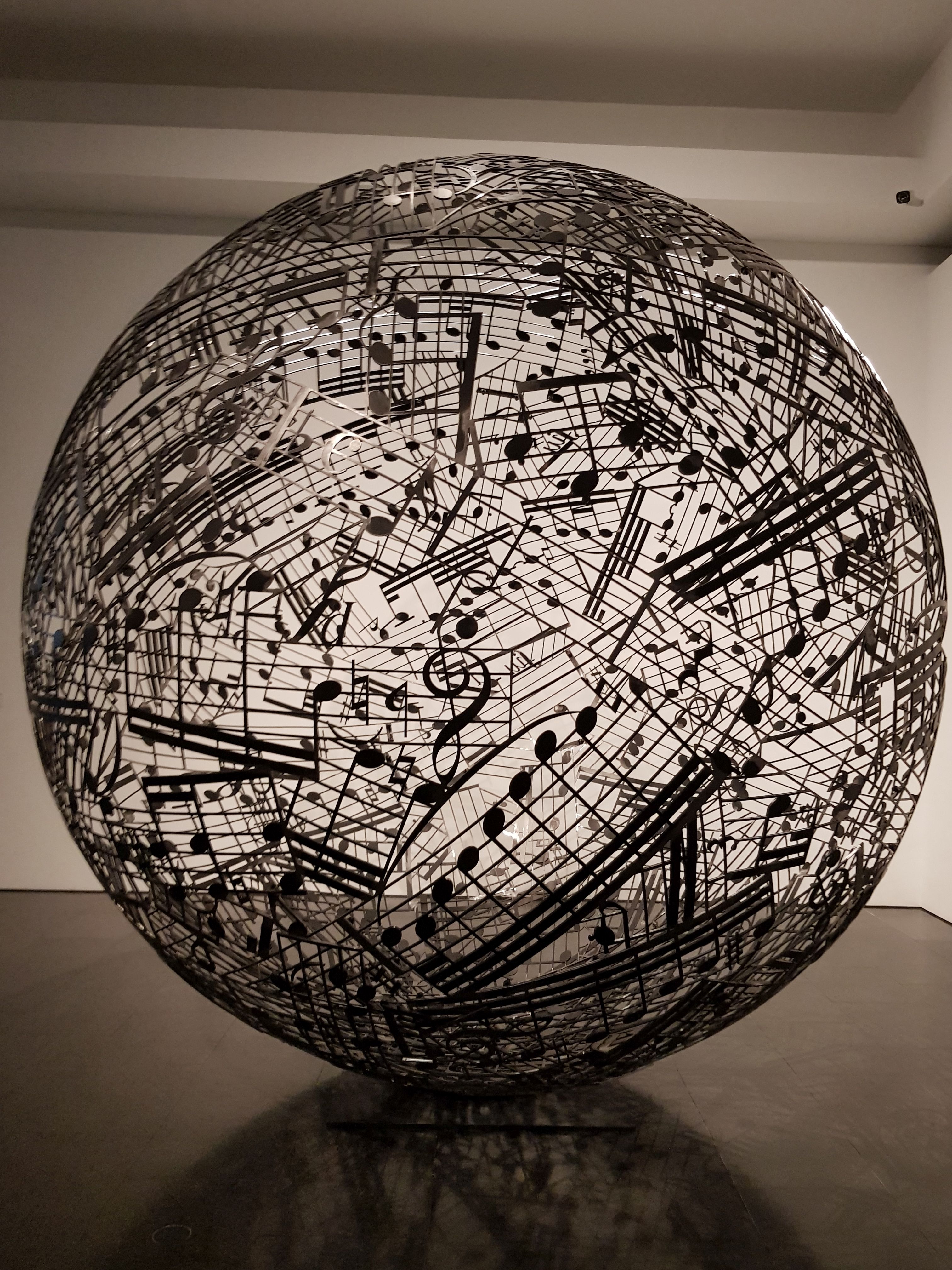 Impressionant i visualment molt atractiva és aquesta immensa forma esfèrica treballada amb connotacions musicals que porta per nom Autorretrat amb música.