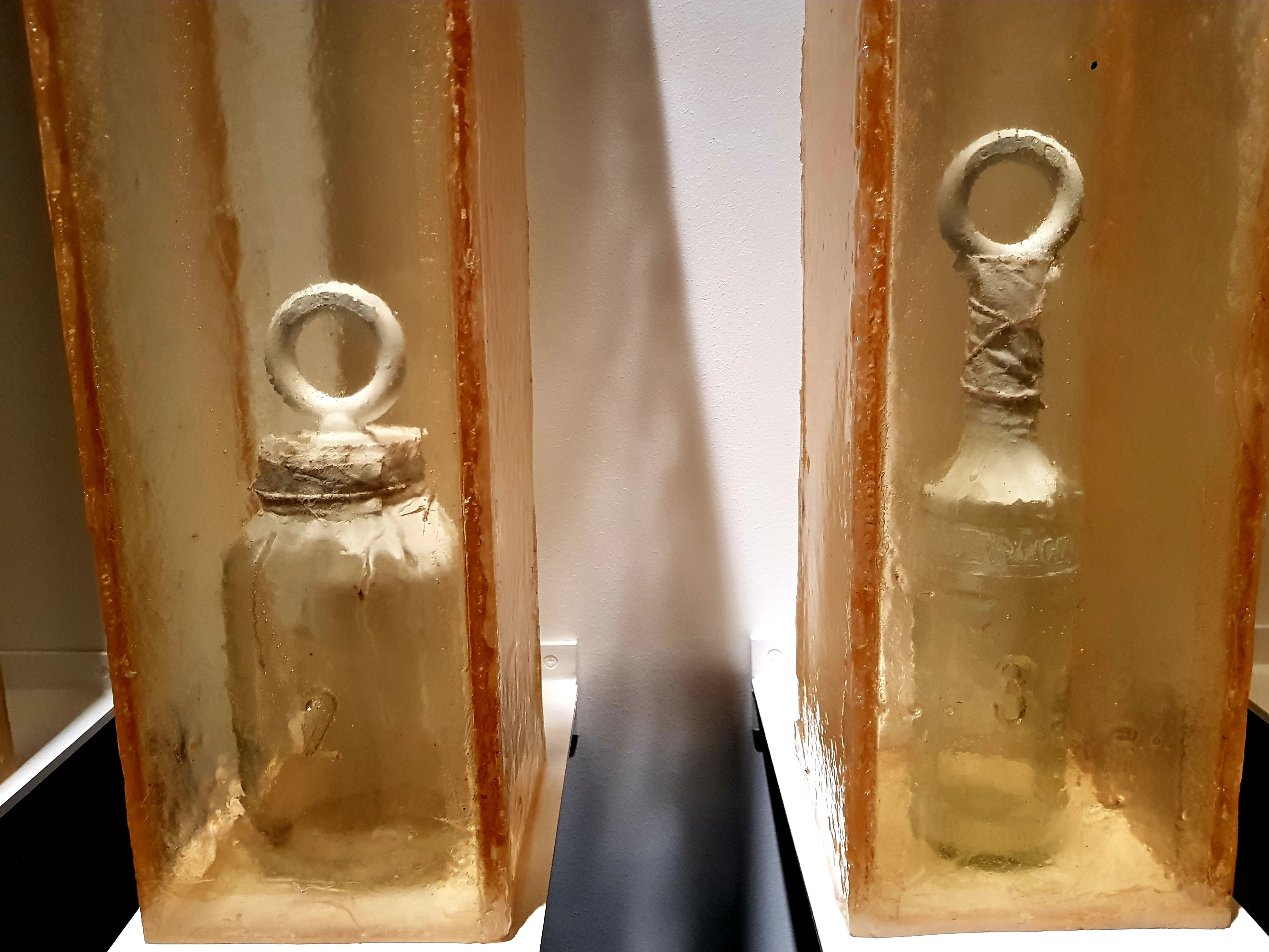 Islands III constitueix un bon compendi dels seus referents personals, com aquestes ampolles de vidre tancades i ficades dins d’uns prismes de resina que semblen conservar de manera molt segura les essències concentrades.