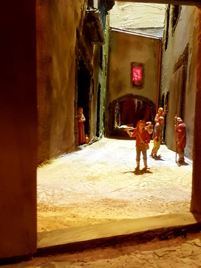 El segon pessebre, protagonitzat pels Reis i del que aquí se’n veu un mínim fragment estava localitzat al Portal dels pous i al fons el paisatge resultava imponent. Aquí es podia veure com sortia el sol en fer-se de dia i, al caure la nit, s’admiraven les constel·lacions. Piura màgia!