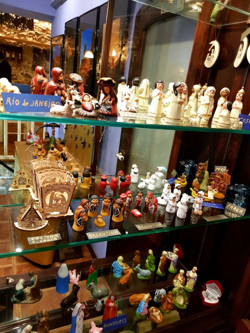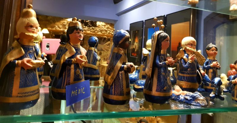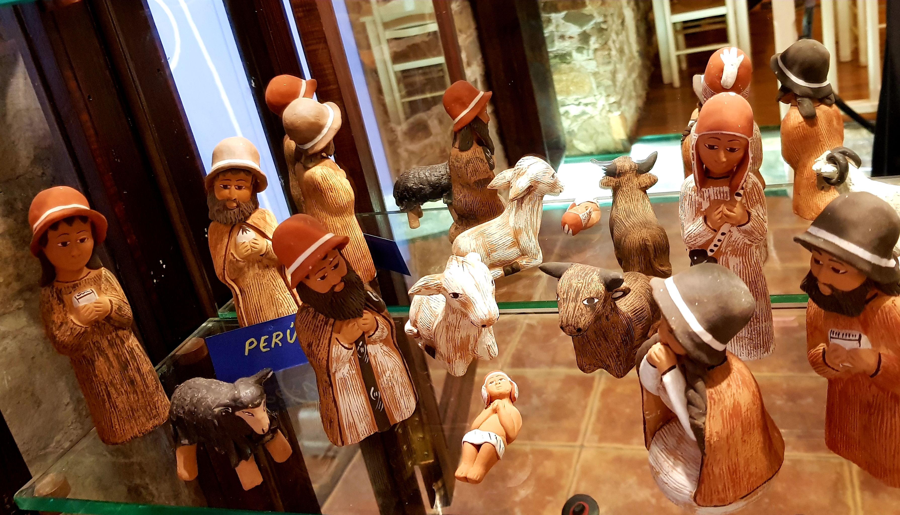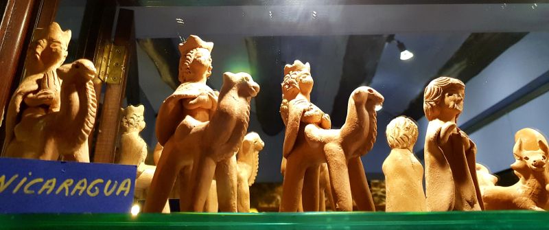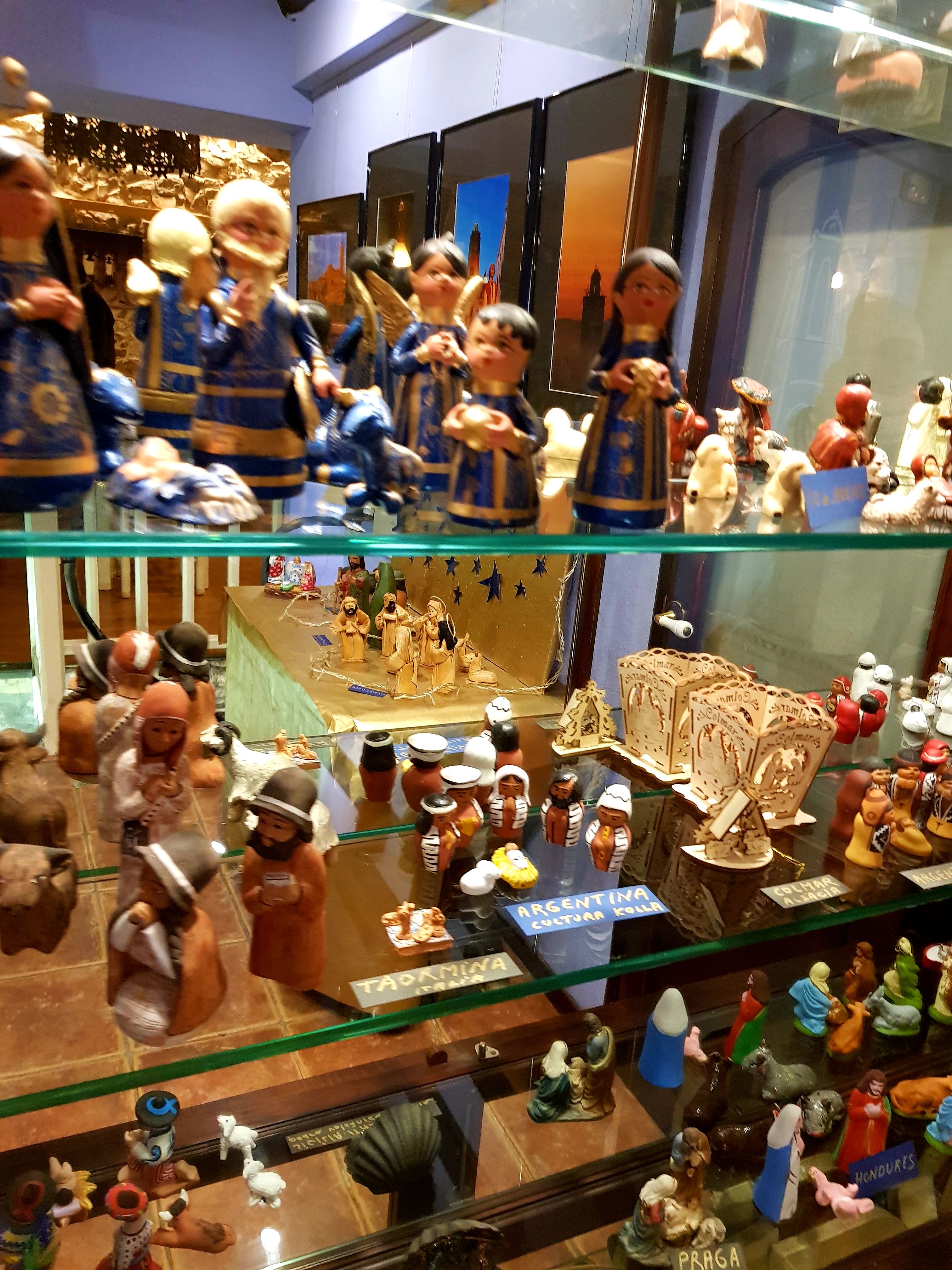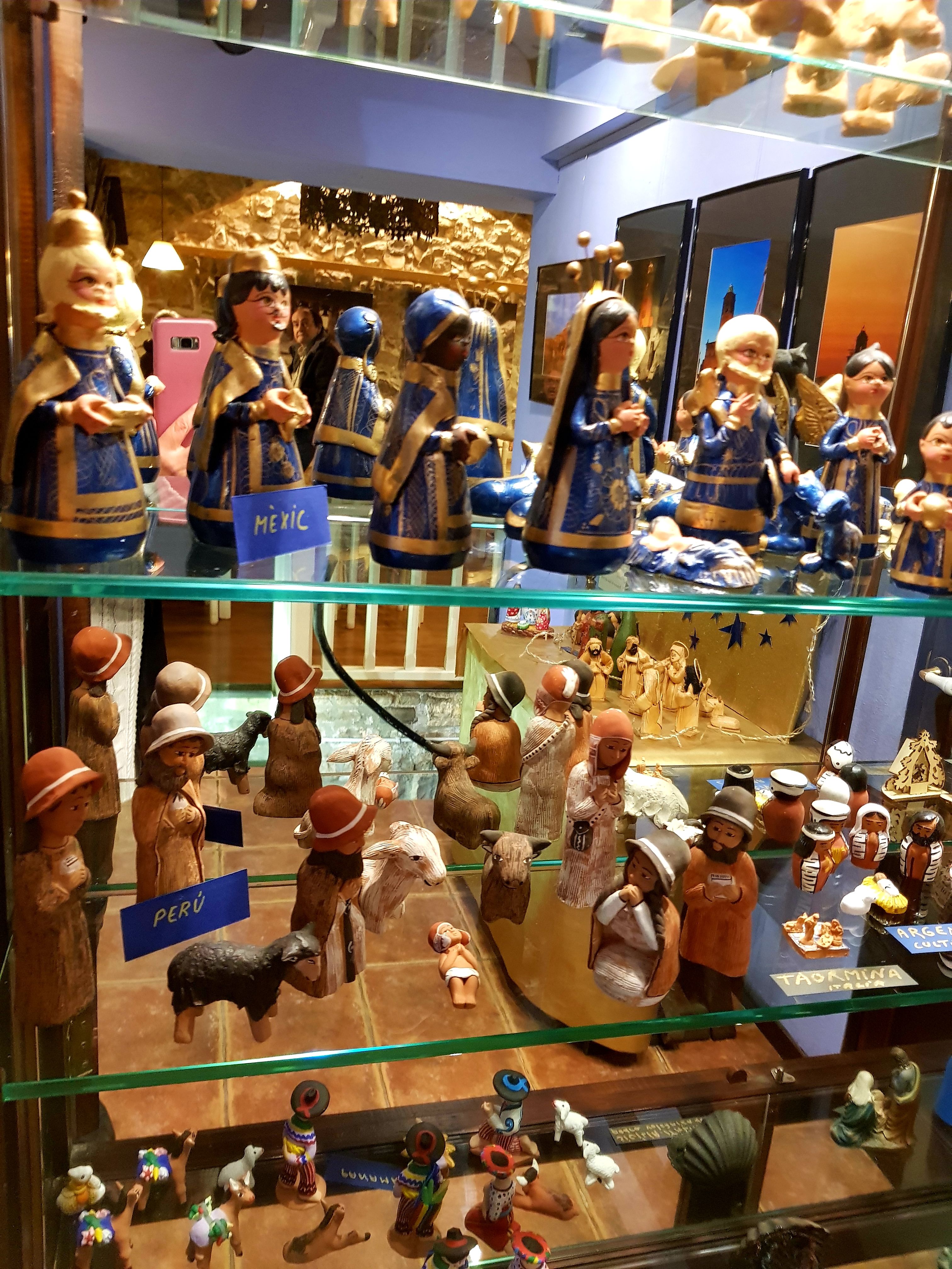 La majoria dels més de quaranta pessebres que es podien veure estaven exposats dins la gran vitrina que ocupa tota una paret. La fragilitat de les peces recomava tenir-les a recer de qualsevol accident.