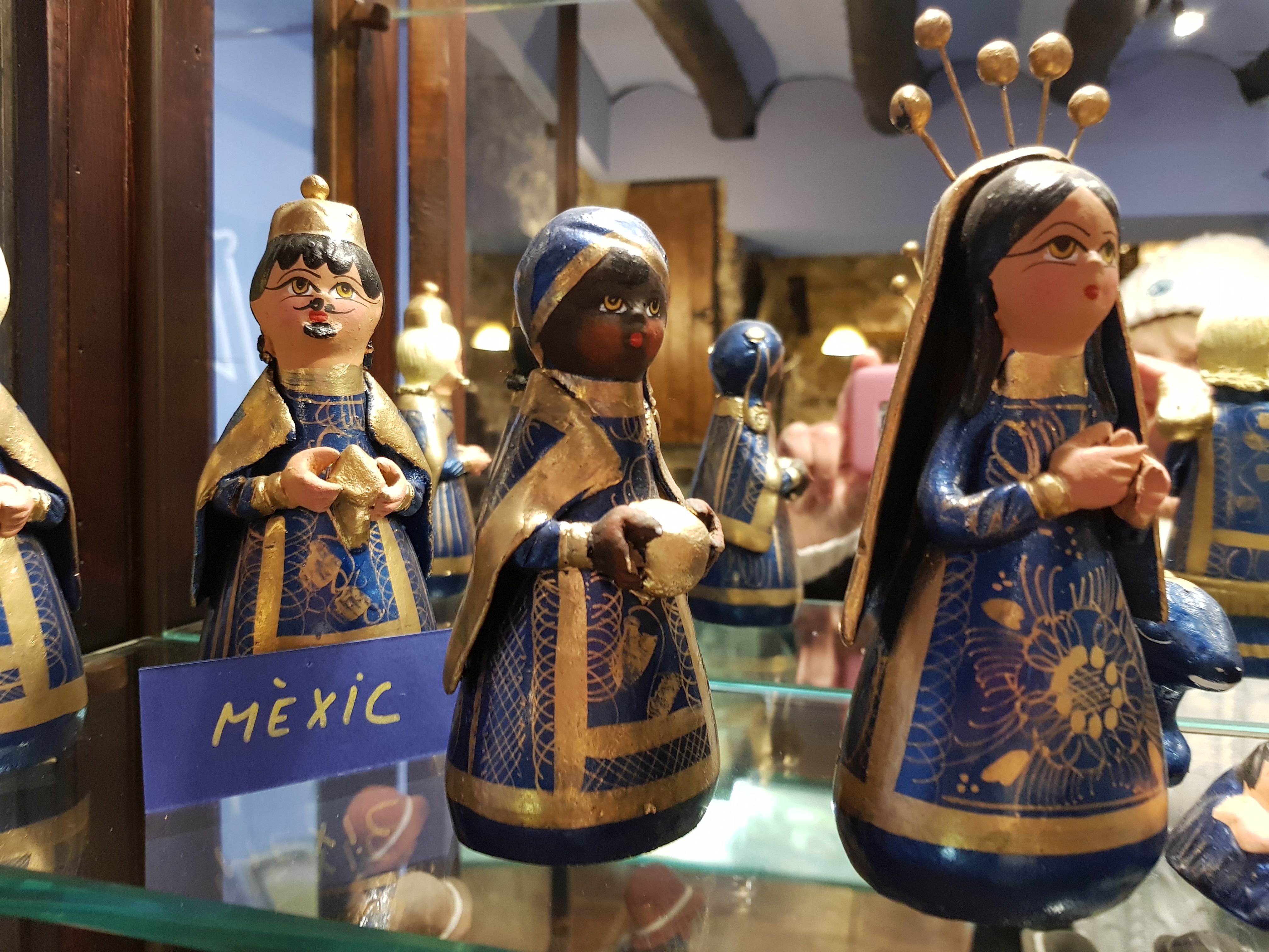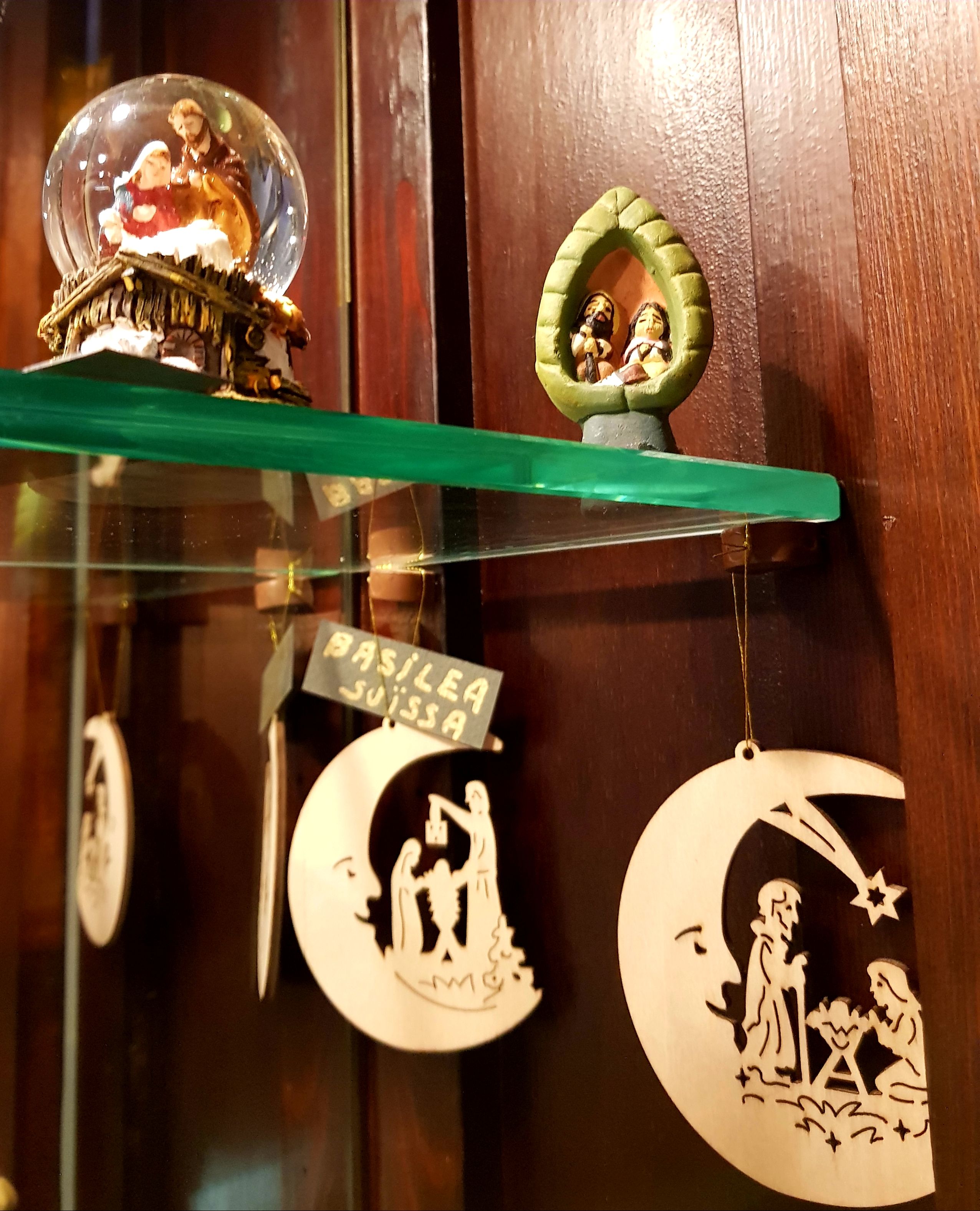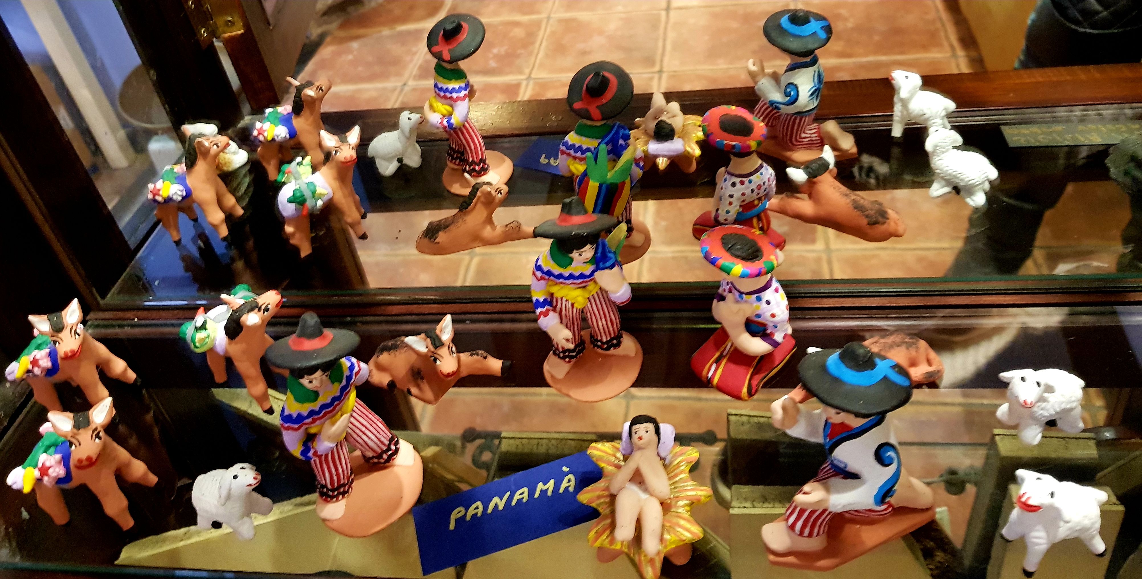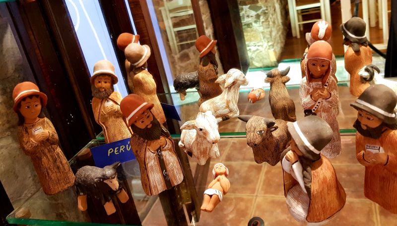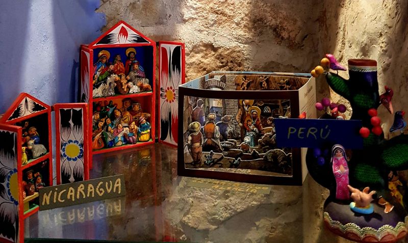 La majoria dels més de quaranta pessebres que es podien veure estaven exposats dins la gran vitrina que ocupa tota una paret. La fragilitat de les peces recomava tenir-les a recer de qualsevol accident.