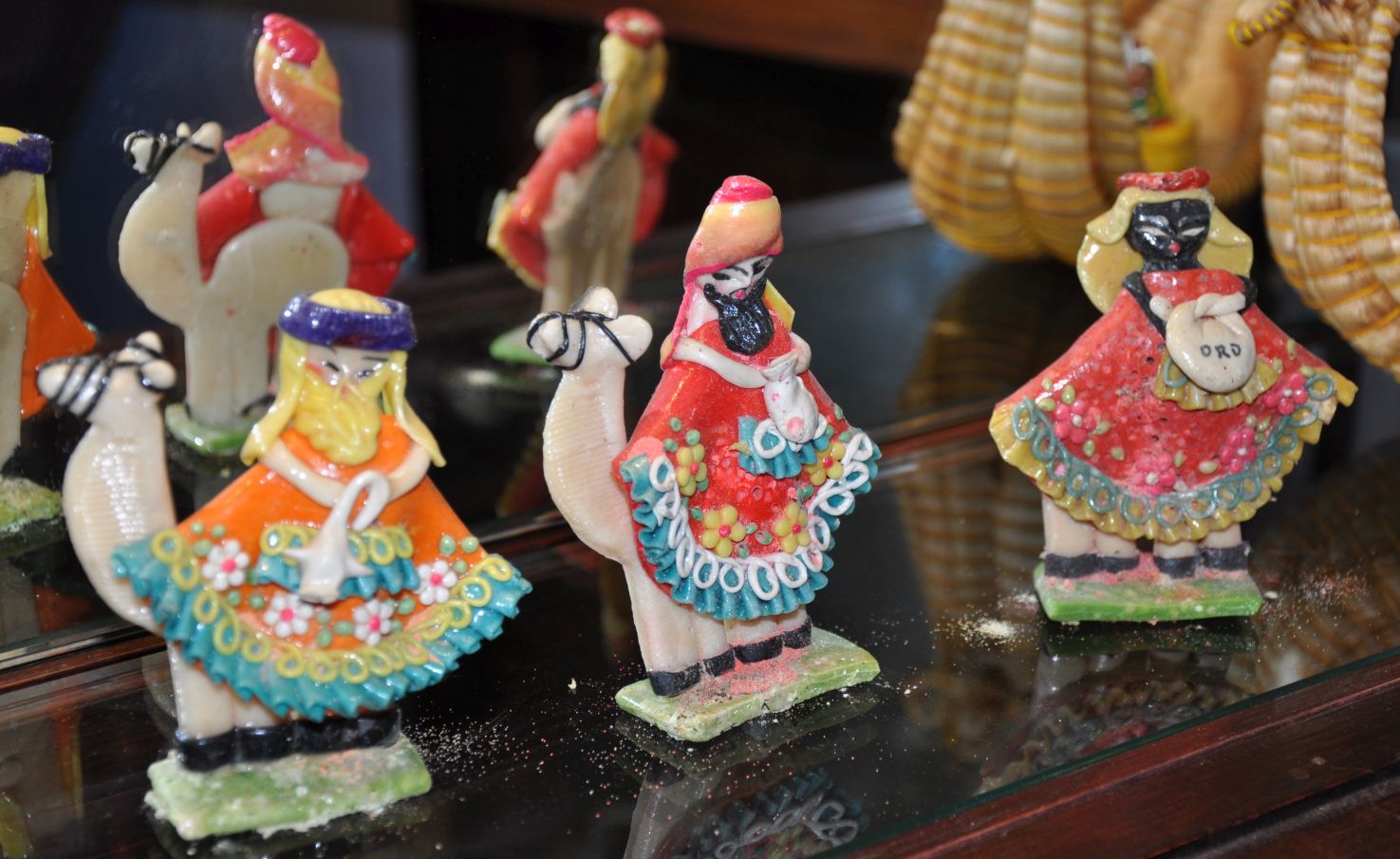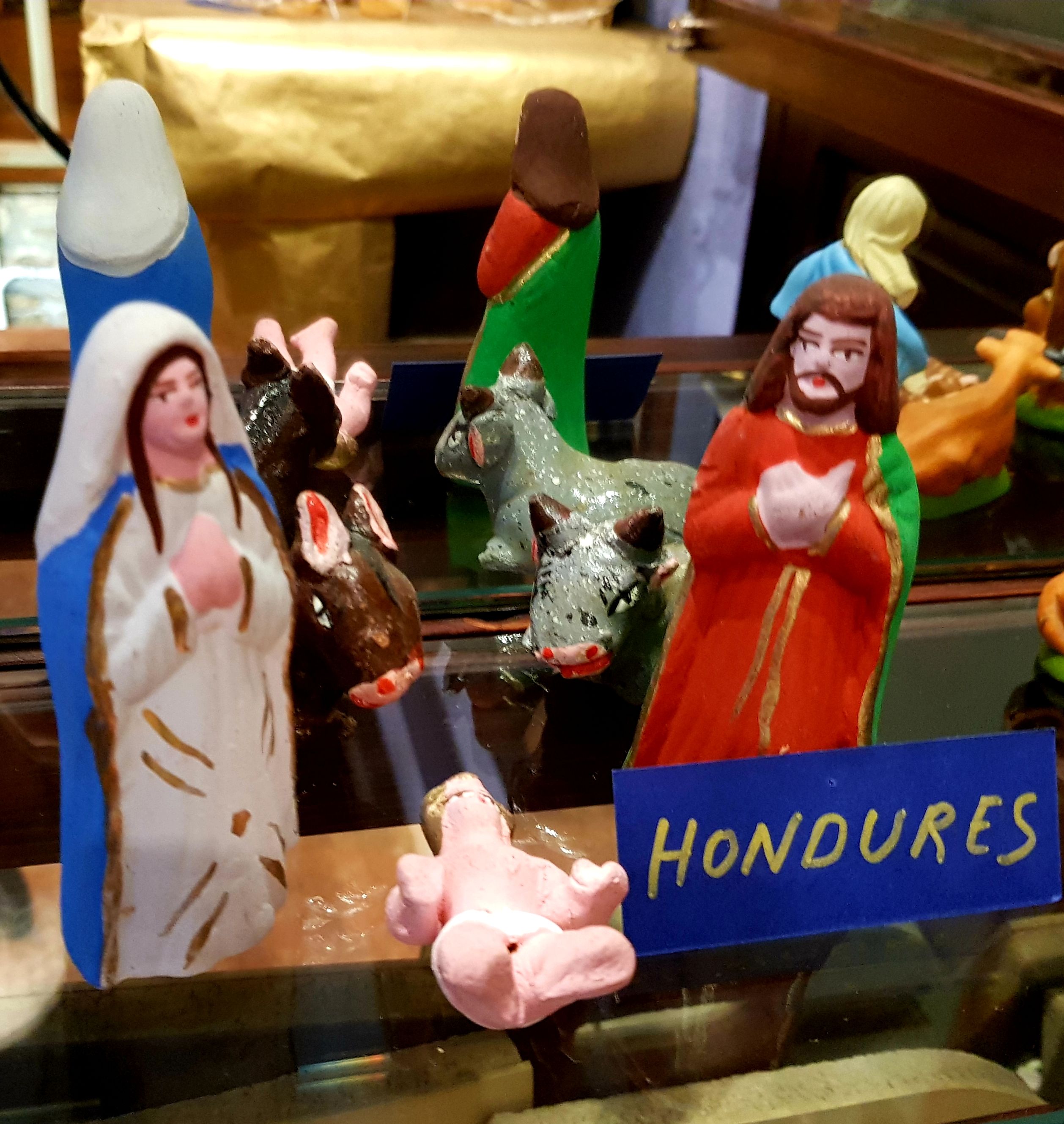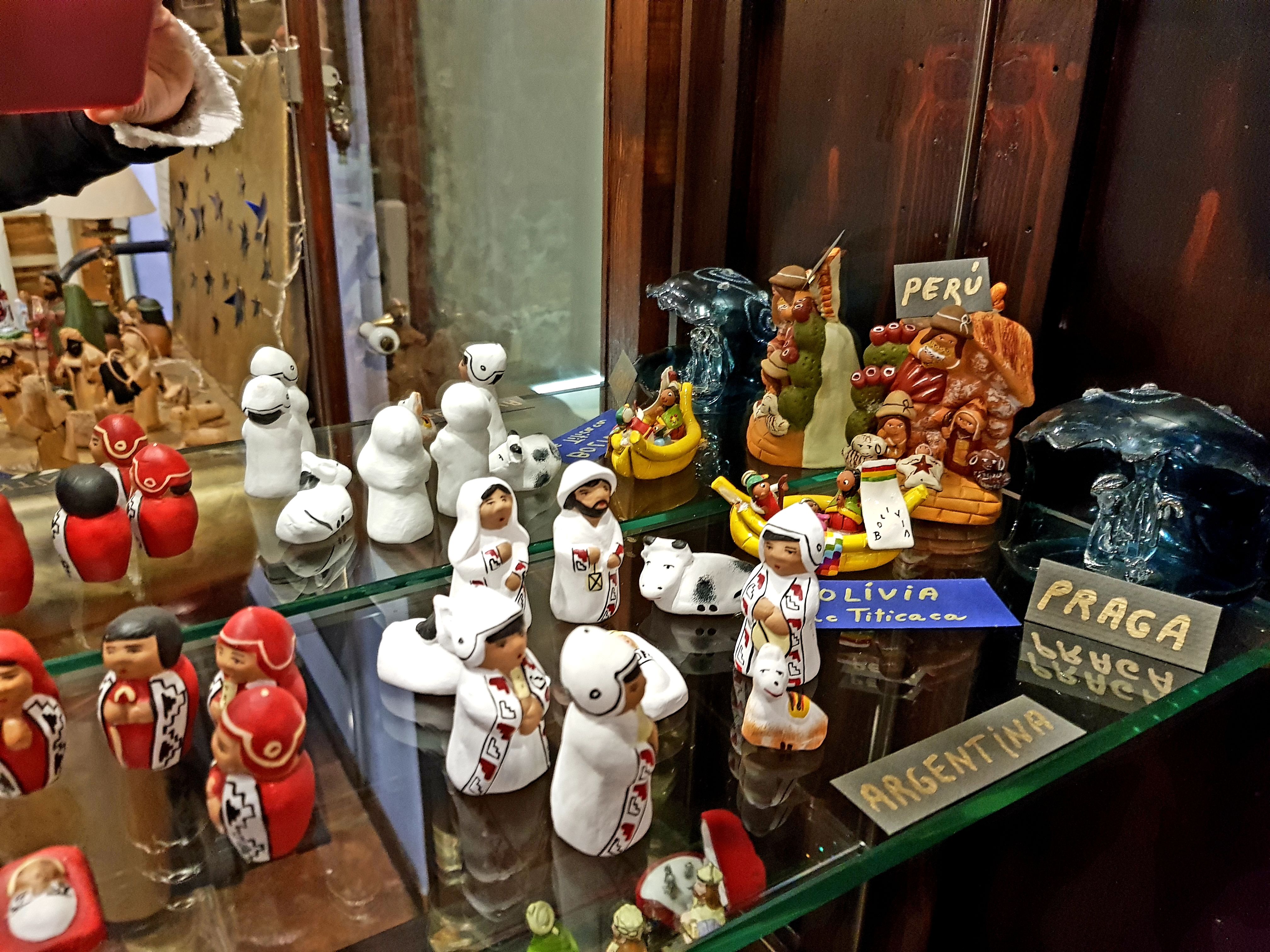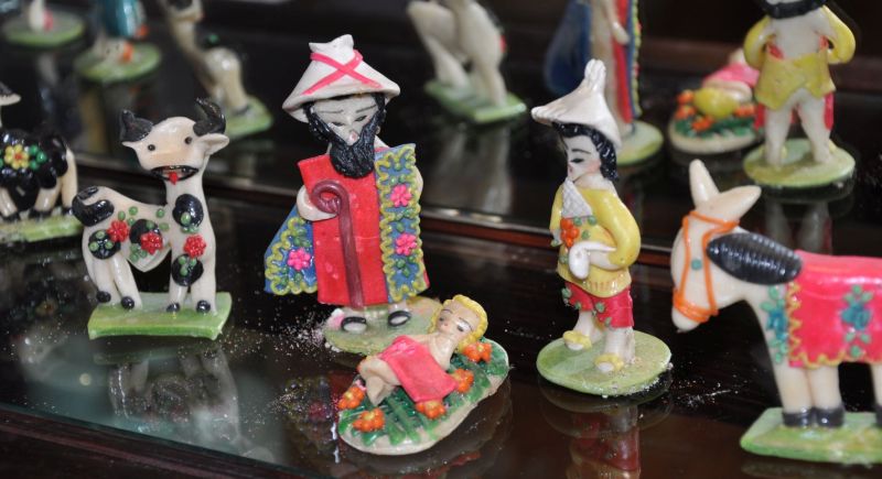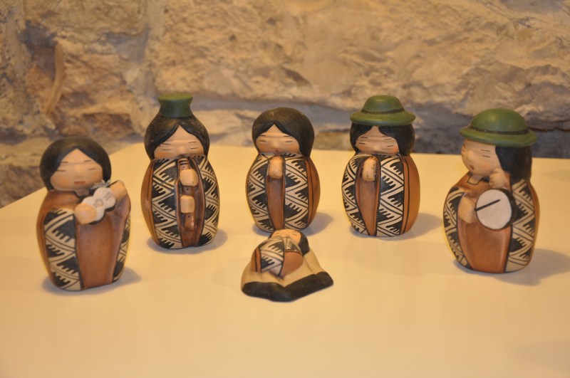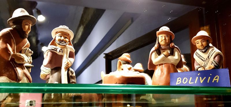 La majoria dels més de quaranta pessebres que es podien veure estaven exposats dins la gran vitrina que ocupa tota una paret. La fragilitat de les peces recomava tenir-les a recer de qualsevol accident.
