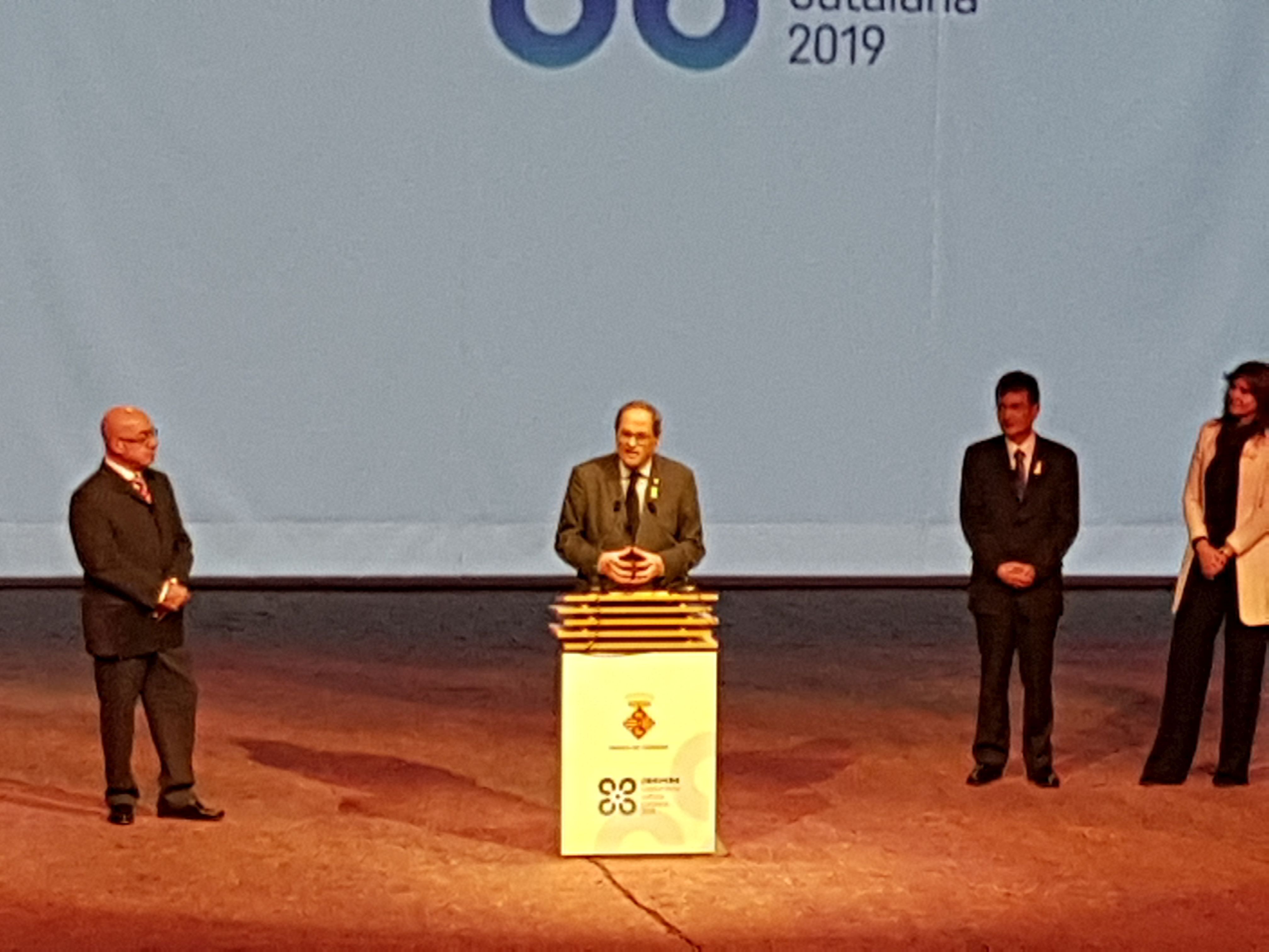 S’esperava l’assistència del Molt Honorable Joaquím Torra, President de la Generalitat. Aquí se’l veu en el moment que entra a la platea inferior. El va acompanyar, entre altres, la consellera de Cultura, Srs. Laura Borràs.