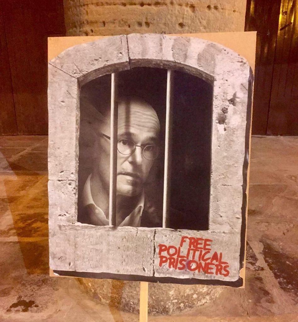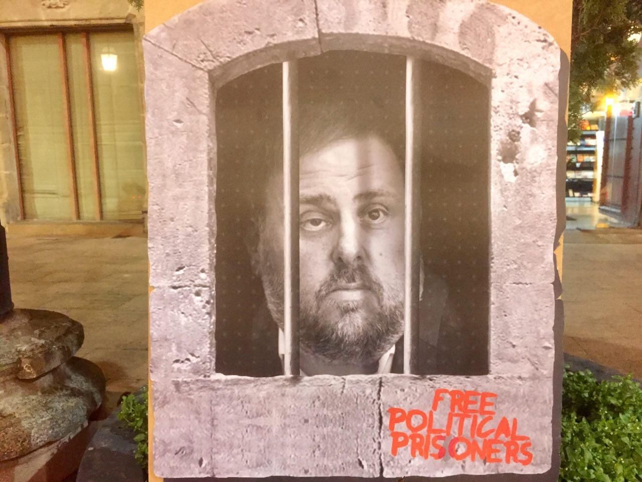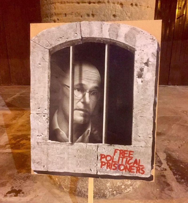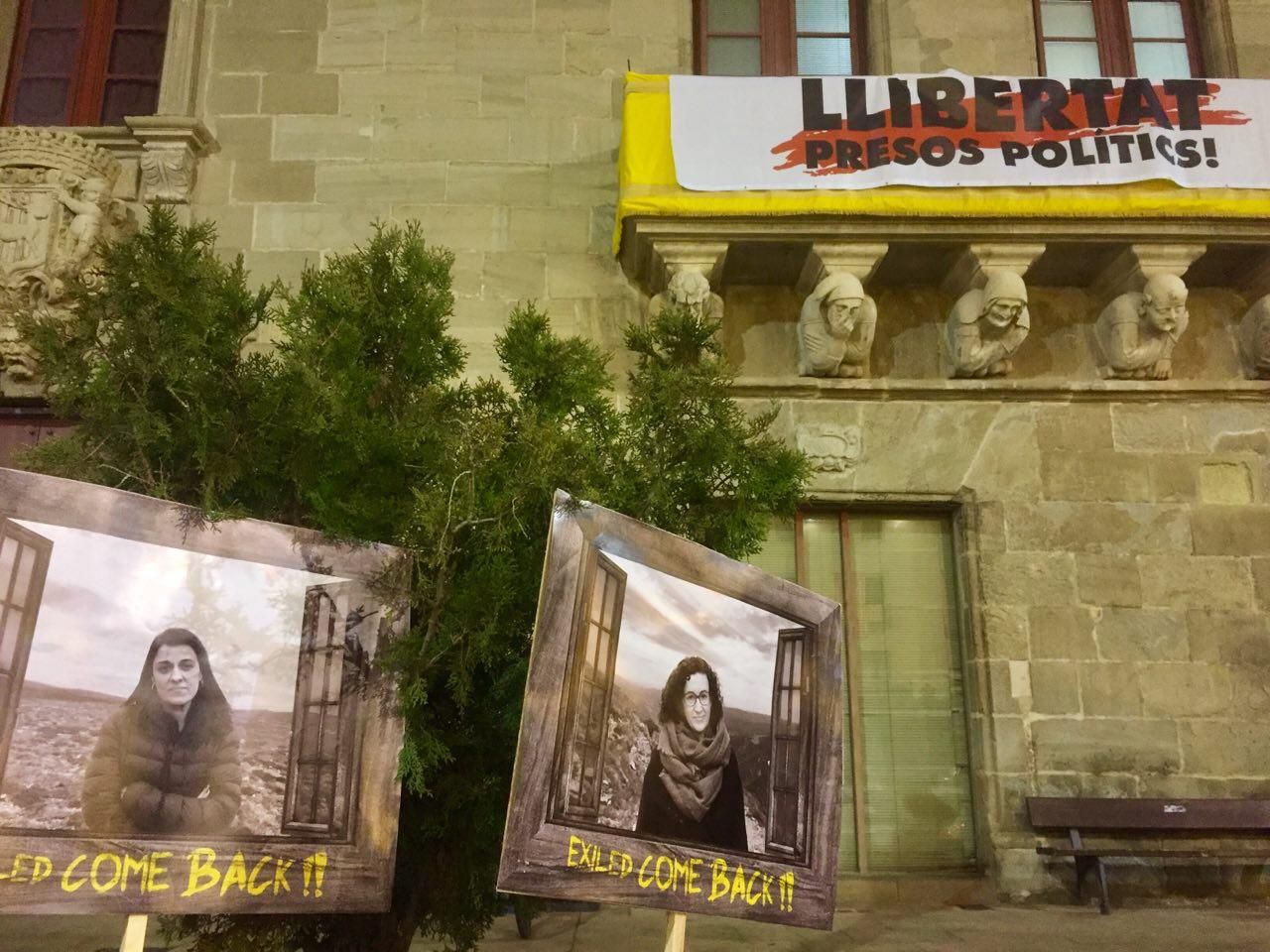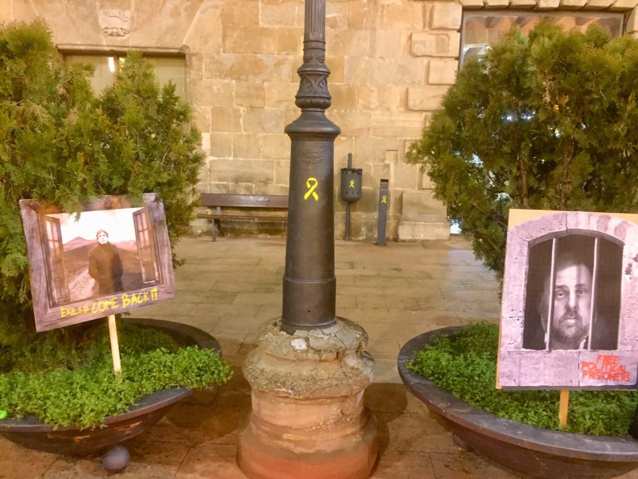 La vesprada del 5 de gener, tota la gentada que va passar per la plaça Major dirigint-se cap a l’església de Santa Maria per escoltar les Completes, va poder veure la quantitat de fotografies que hi havia posades a les columnes dels porxos i altres llocs amb el rostre dels presos i preses polítics i exiliats i exiliades.