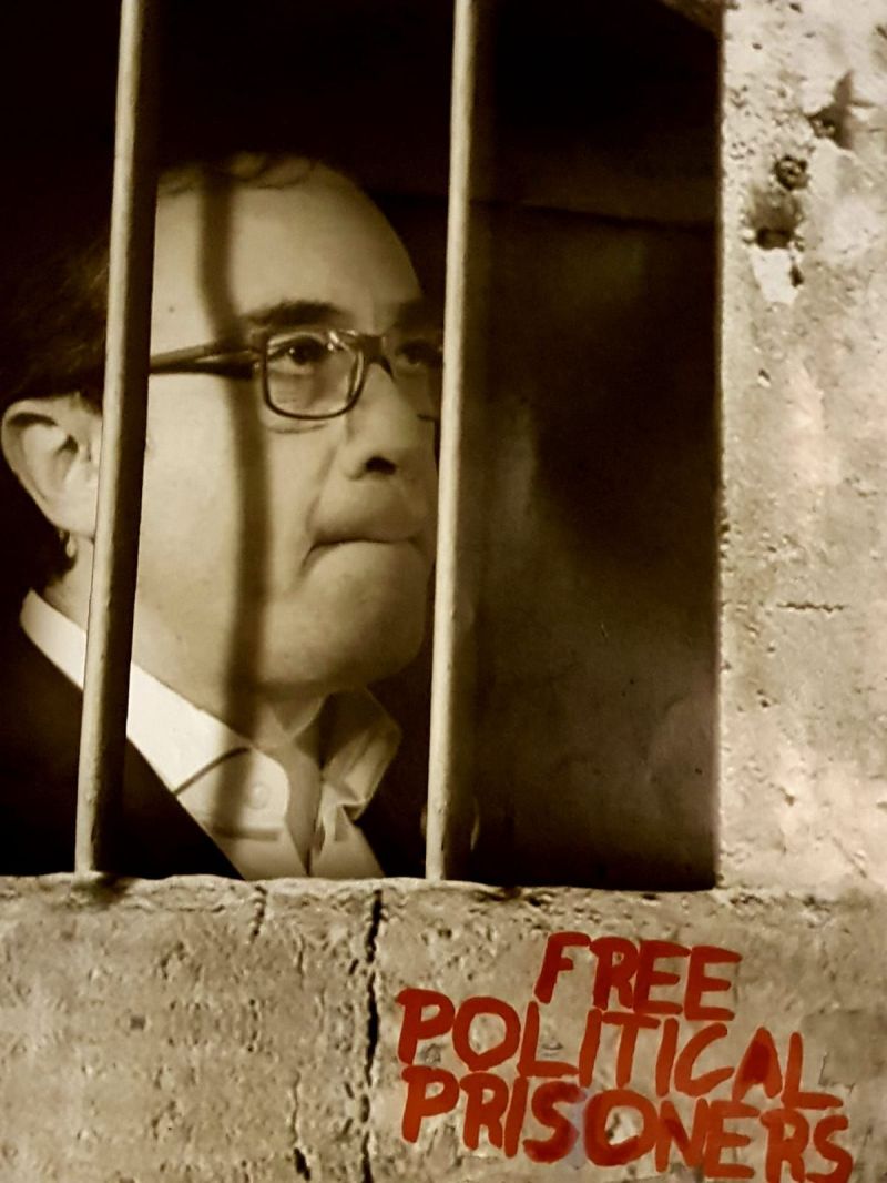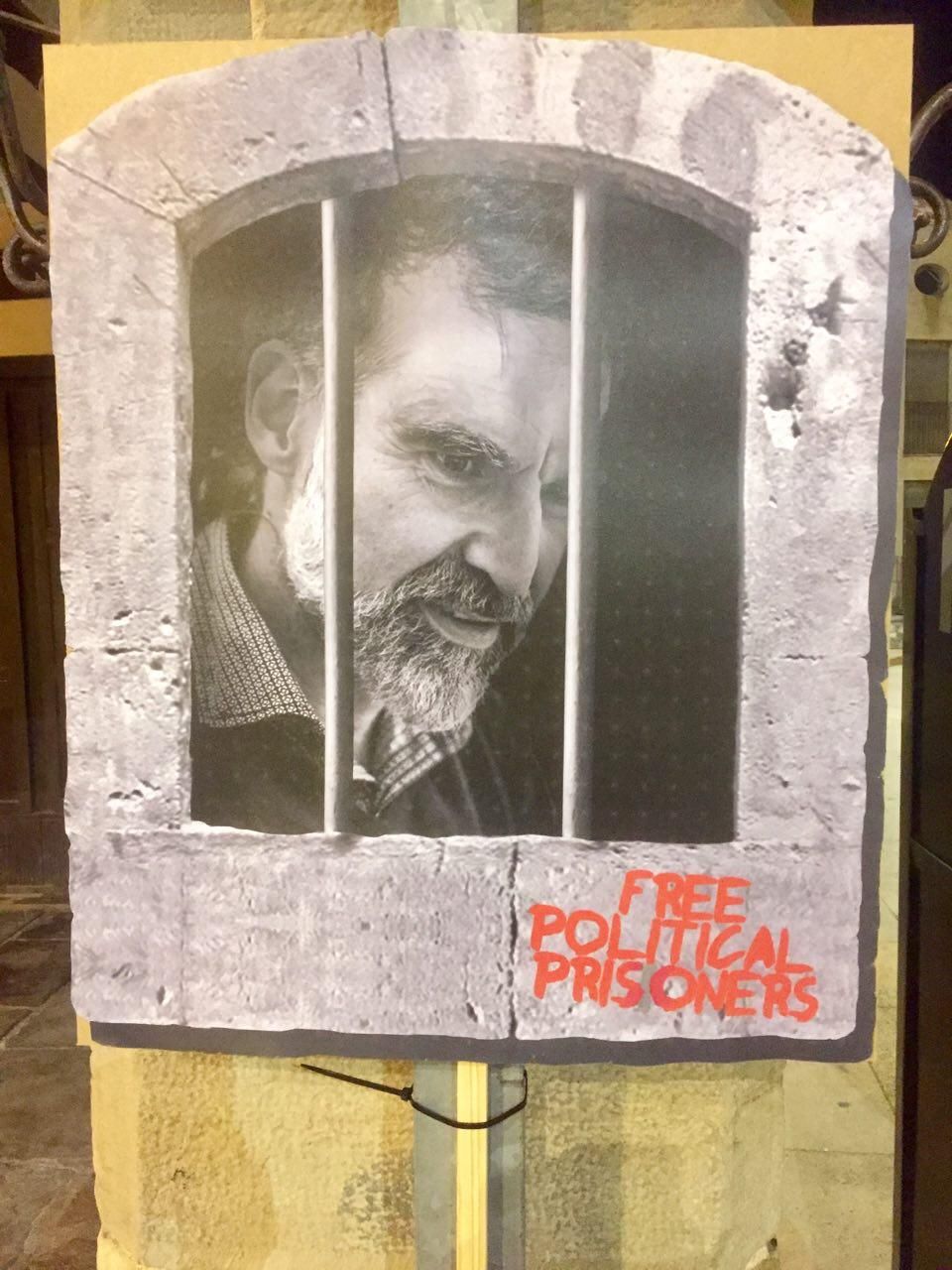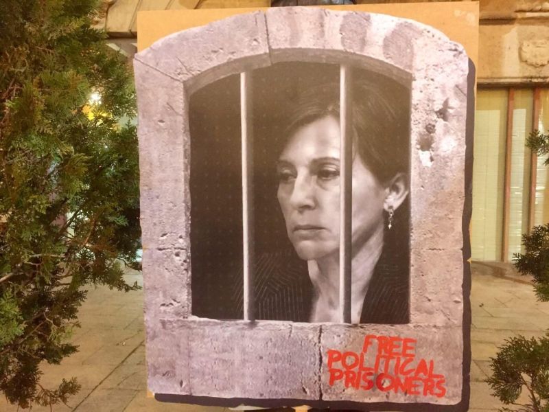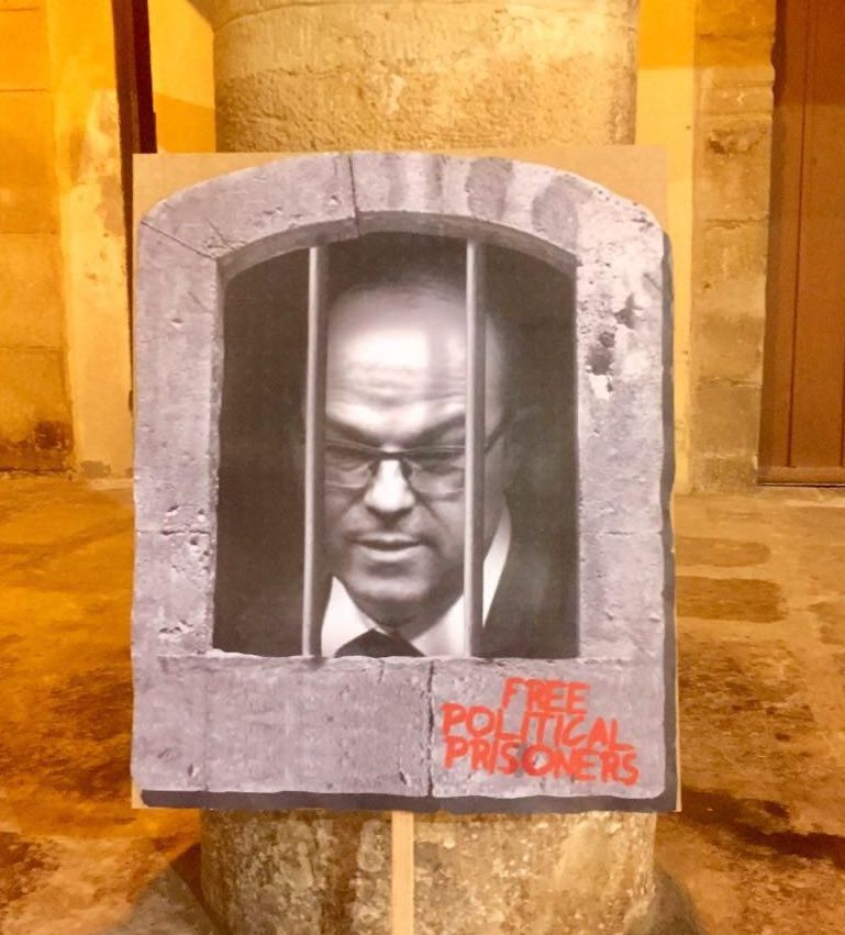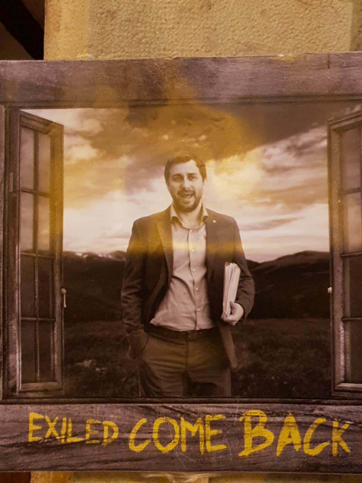 La vesprada del 5 de gener, tota la gentada que va passar per la plaça Major dirigint-se cap a l’església de Santa Maria per escoltar les Completes, va poder veure la quantitat de fotografies que hi havia posades a les columnes dels porxos i altres llocs amb el rostre dels presos i preses polítics i exiliats i exiliades.