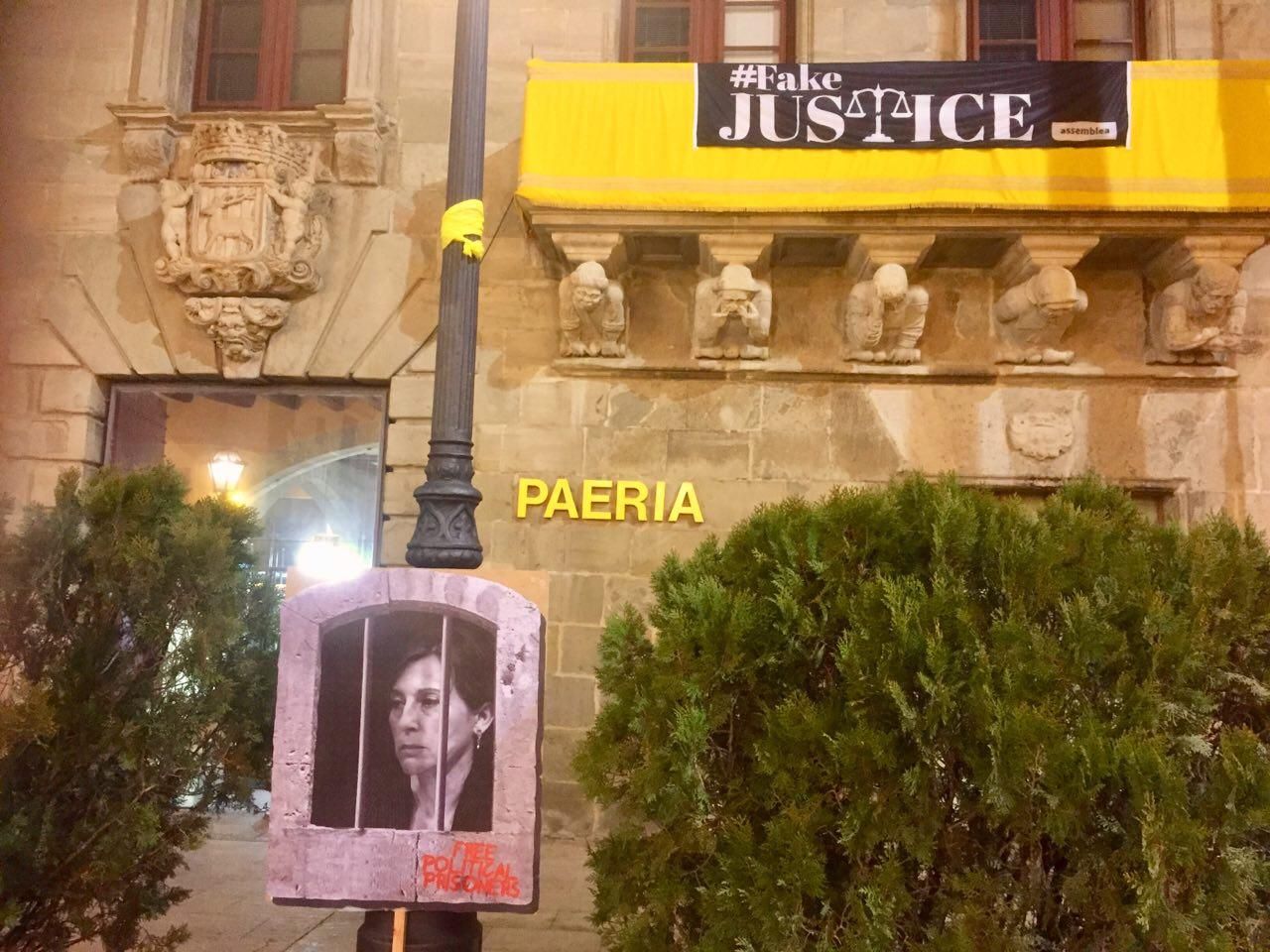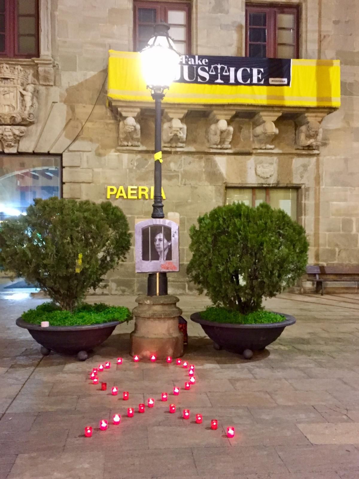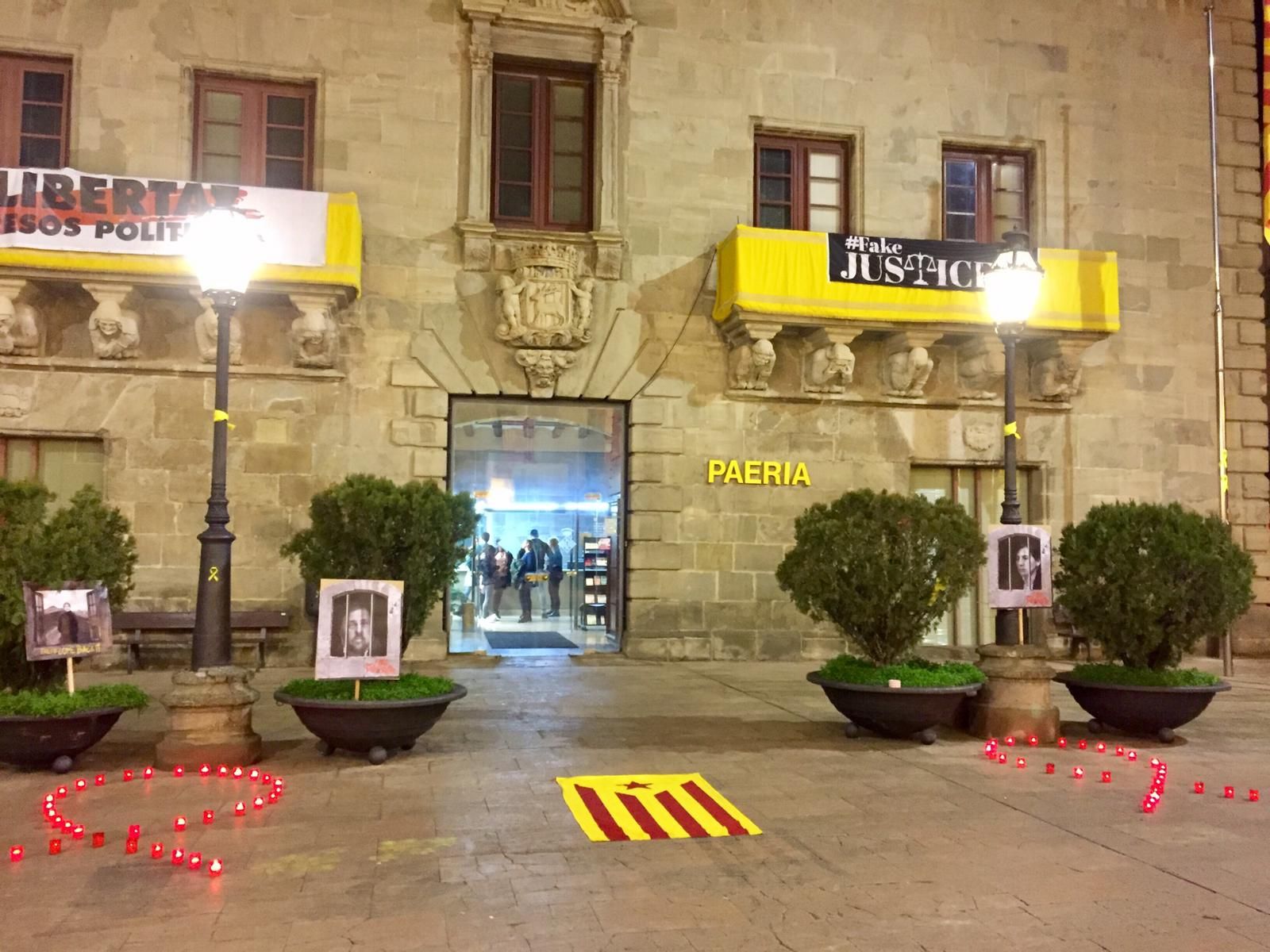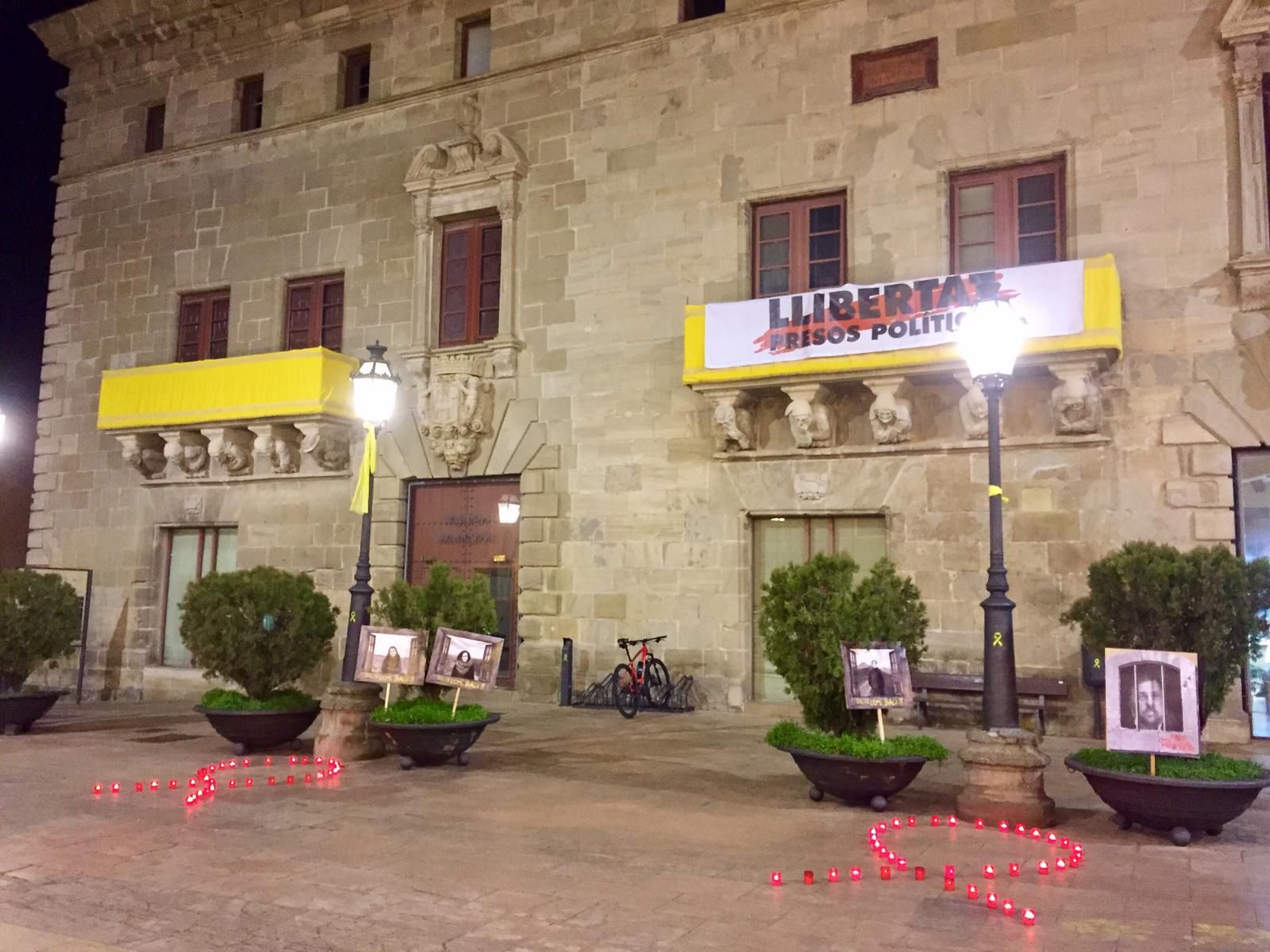 Tant les pancartes dels balcons de la Paeria, com els llaços al terra fets amb espelmes i les fotografies escampadess arreu donaven fe del moment tan crític i dolorós que s’està vivint a Catalunya.