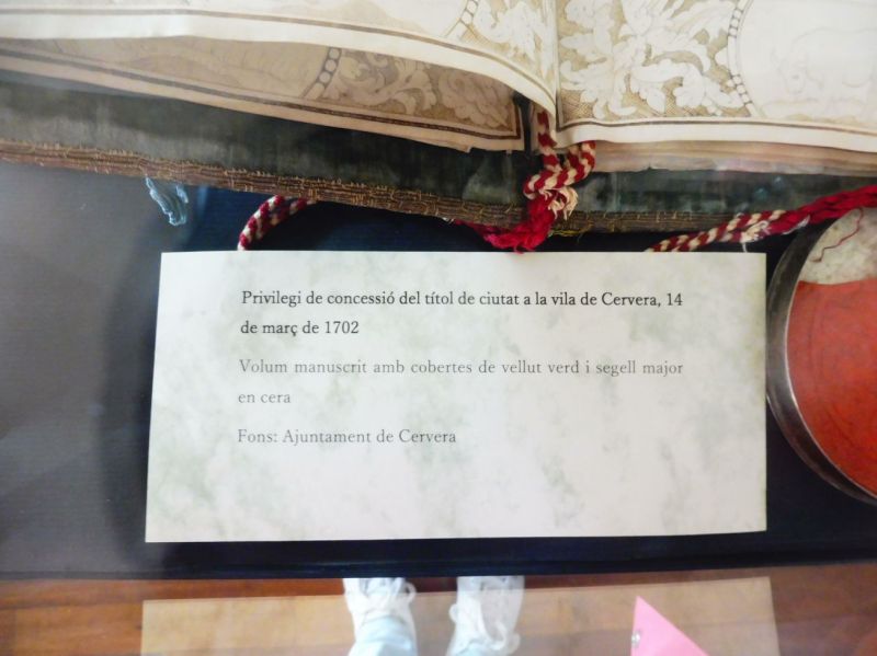 Del 1702, Privilegi de concesió del títol de ciutat a la vila de Cervera.