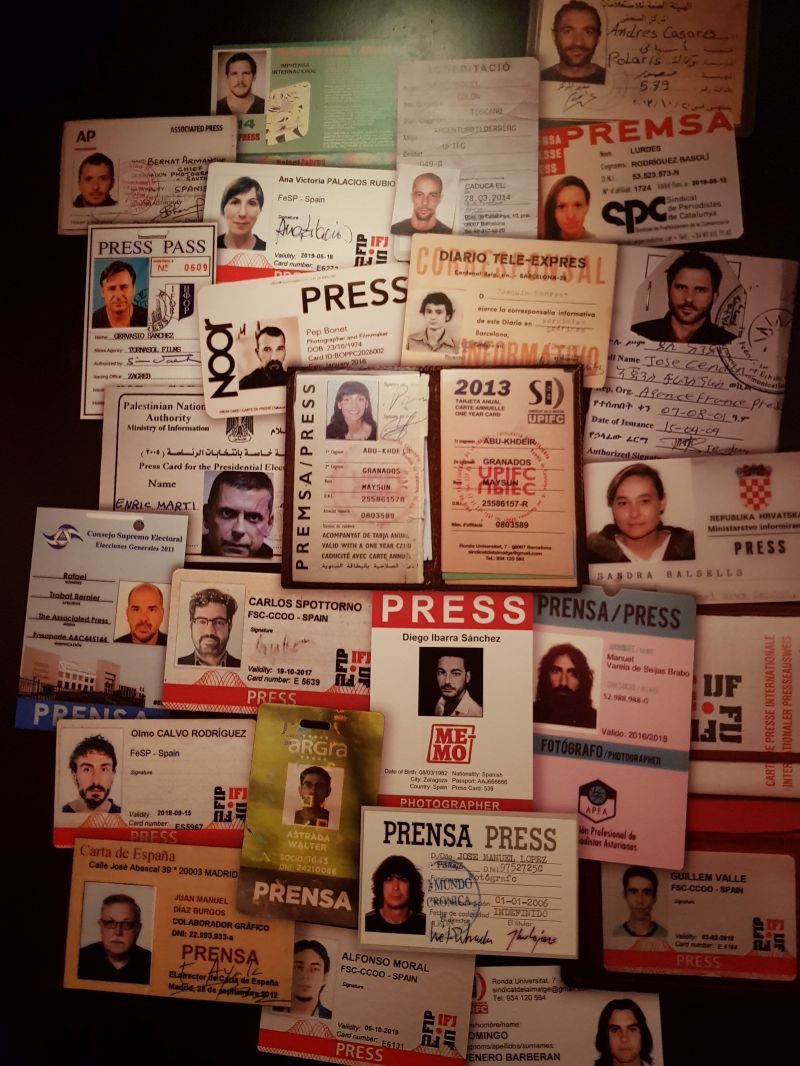 A la sortida de l’exposició es podia veure els carnets professionals de cadascun dels i de les periodistes responsables de la gran quantitat de fotografies impactants de les que en aquest post n’heu pogut veure unes poques.