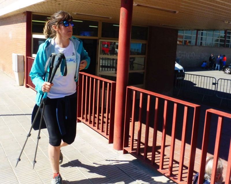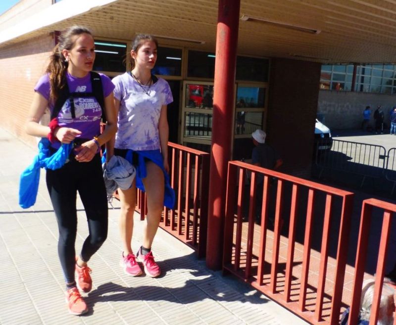 Dolors i M. Rosa Villarroya arriben a Cervera on després de menjar seguiran cap a Guissona fent els 54 km. Xavier Villarroya, nebot de M. Rosa fa molt que ha acabat la Marxa. L’ha fet corrent i ha arribat en tercer lloc.