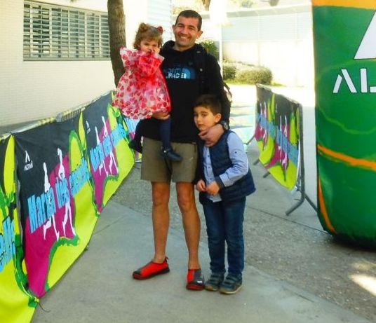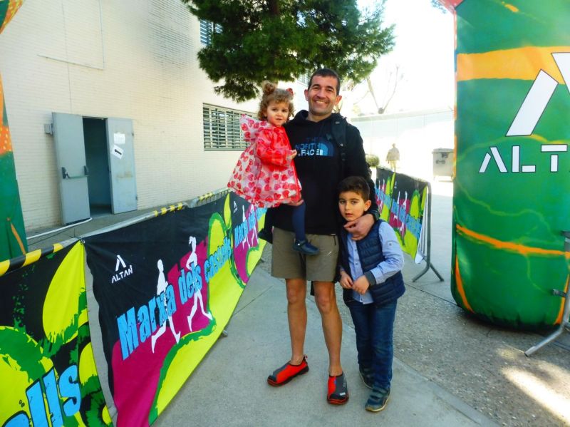 Va arribar tan d’hora que no vaig ser a temps de fer la fotografia entrant a la meta. Un cop es va haver dutxat i canviat va posar amb els seu fill i amb la seva filla resultant aquesta entranyable imatge.