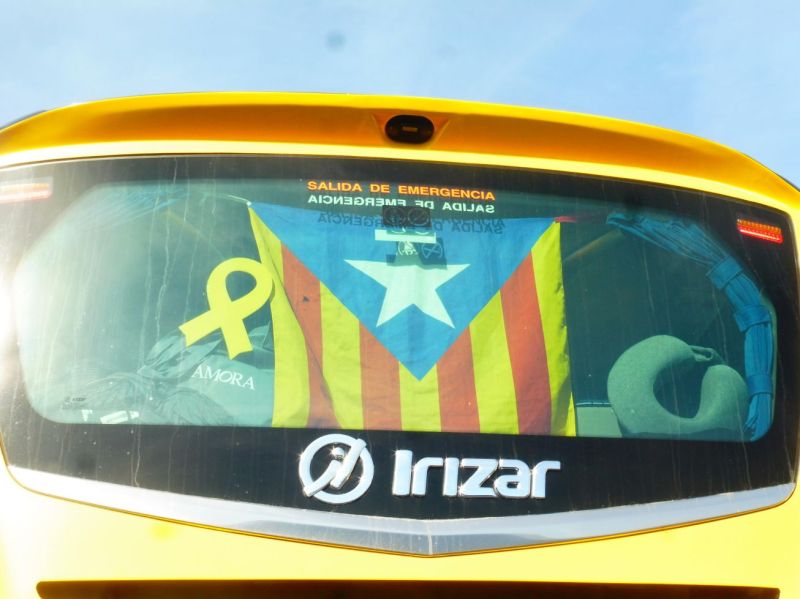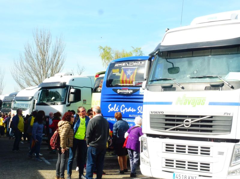 Pel camí desenes i desenes d’autobusos ens acompanyaven en la ruta. També molts cotxes particulars i els de les motos que passaven a tota pastilla amb les estelades voleiant.