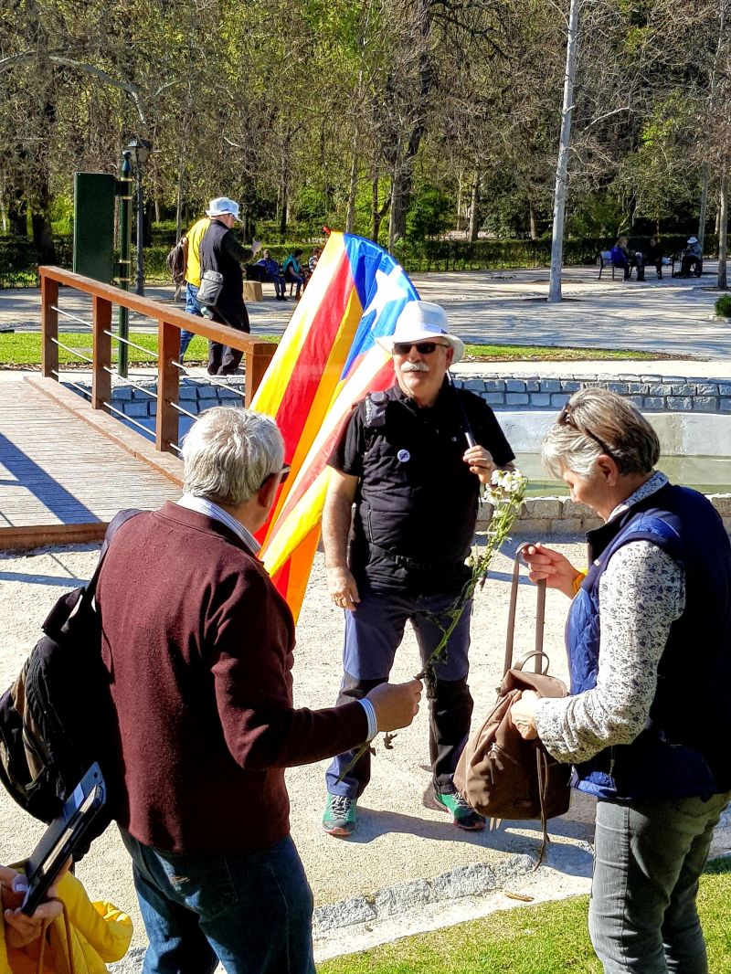 Tothom es va anar repartint en petits grups buscant l’ombra. Feia una calor fóra de lloc i la gent de Madrid es movia pel parc vestits d’estiu.