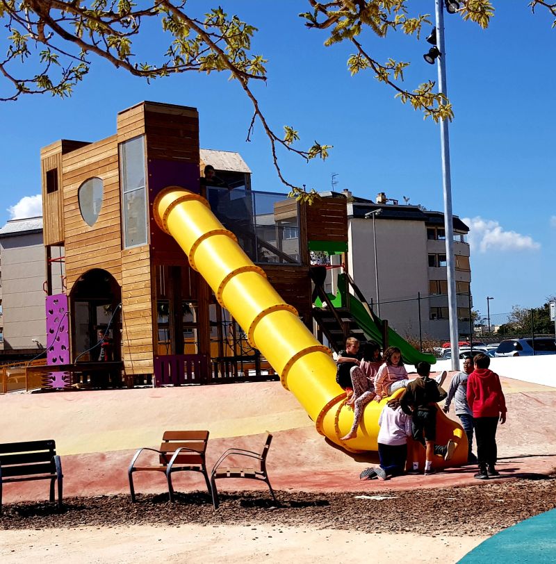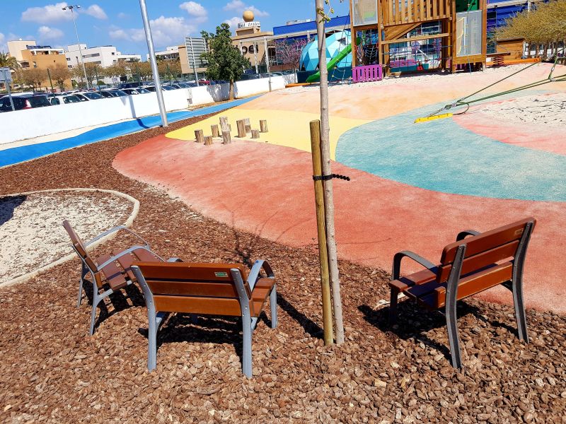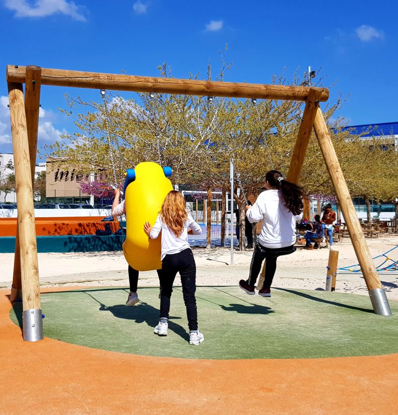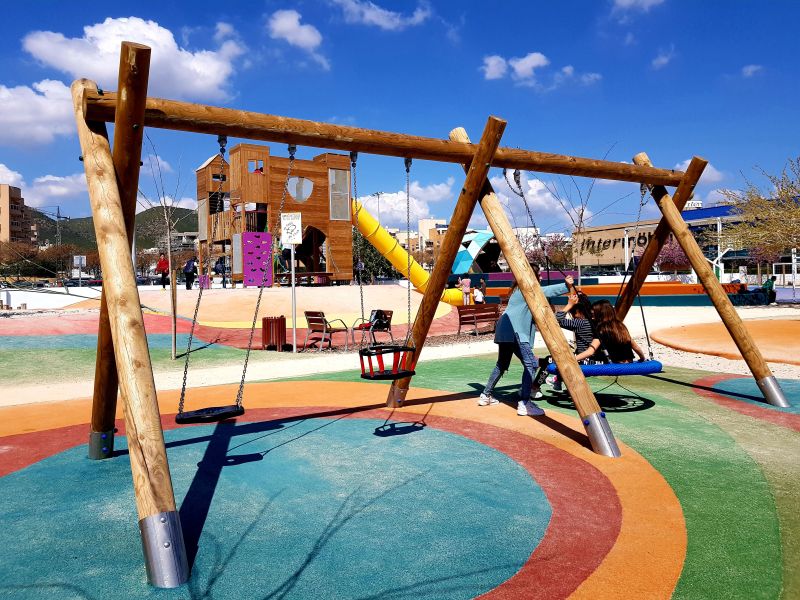 Gronxadors per diferents franges d’edat. Tot amb el suport d’elements no agressius: fusta preparada per exterios, terres emmoquetats amb materials especials…
