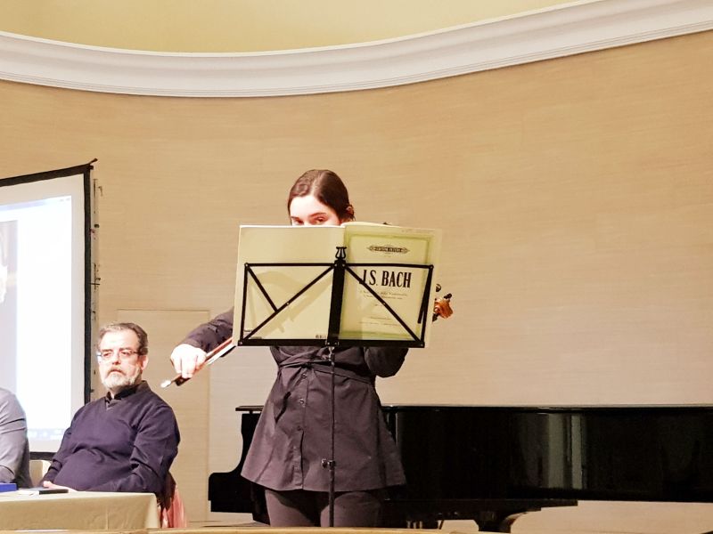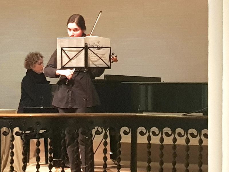 Com a cloenda es gaudeix amb una altra intervenció musical en la que la directora del Conservatori, Estefania Balcells, acompanya la jove intèrpert al piano.