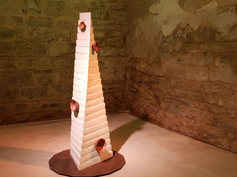 Aquesta obra simbolitza, en el seu pla arquitectònic, la verticalitat. L’ascens progressiu implica recorregut. Les mènsules suporten un pes en l’espai intermedi. Els seus cicles no són humans. No percebem els seus microscopis canvis. Però també estan atrapades en el cicle de la transformació de la matèria.