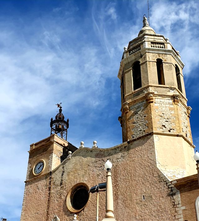 Darrera l’església s’hi troba un espai preciós on s’hi destaquen el Museu Maricel, un dels edificis més emblemàtics de la ciutat i el Museu de Cau Ferrat, que va néixer com un taller a la casa del pintor Santiago Rusiñol on s’hi exposa molta obra d’art català i d’altres indrets. És una zona preciosa i la més emblemàtica de Sitges.