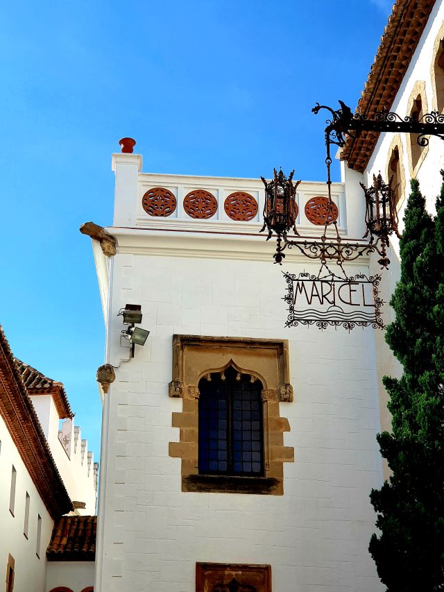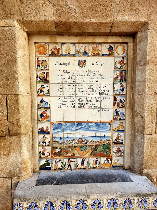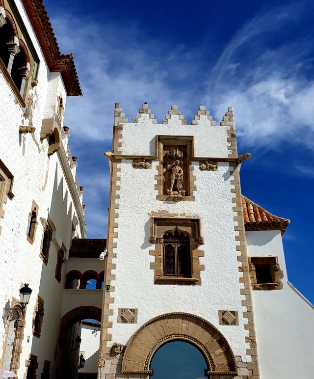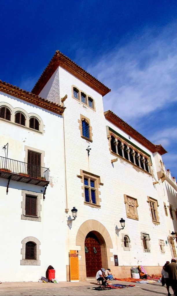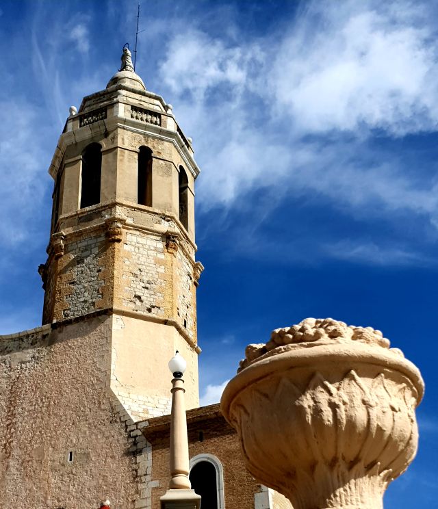 El tret més significatiu de la ciutat és l’església de Sant Bartomeu i Santa Tecla a la que s’hi accedeix per una magnífica escala vora mar. La podeu veure al fons. El personatge de l’escultura que es veu en primer pla és Santiago Rusiñol.