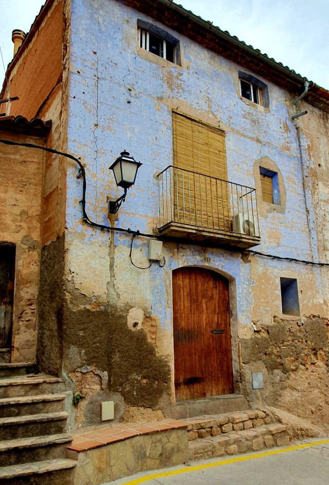 Les cases del poble, lentament, es van anar recuperant i restaurant. Aquest color blauet es repeteix com una constant en la pintura.