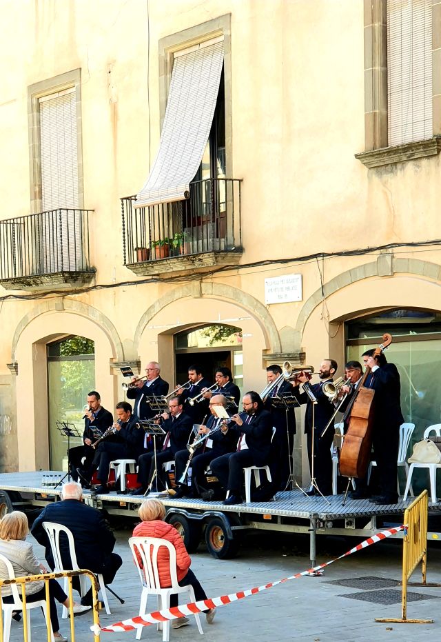 Seguim amb les activitats programades en motiu de la Festa Major. Les sardanes a la plaça Santa Anna són, des de sempre, motiu de trobada i de gaudi. En aquesta edició especial no se’n van poder ballar però sí escoltar en format concert. Un concert que anà a càrrec de la Cobla Selvatana.
