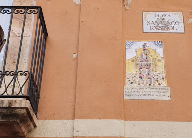 La plaça de Santiago Rosiñol és d’on surt l’escala d’accés. S’hi poden veure diferents plaques recordant els “castellers”, tan famosos en aquesta terra.