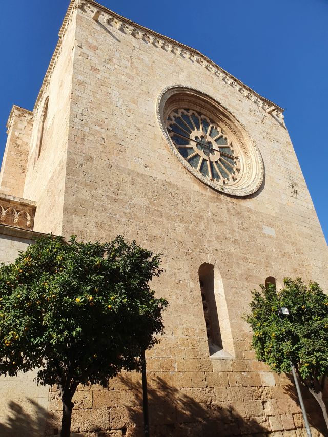 En aquestes properes imatges podreu veure la catedral que, tot i que per accedir-hi cal pujar unes escales, cosa que li dóna més solemnitat, la seva façana principal no resulta grandiosa. Cal donar la volta a tot el recinte i, aleshores, sì que es descobreixen les autèntiques dimensions d’aquest edifici que vist, des del davant, enganya.