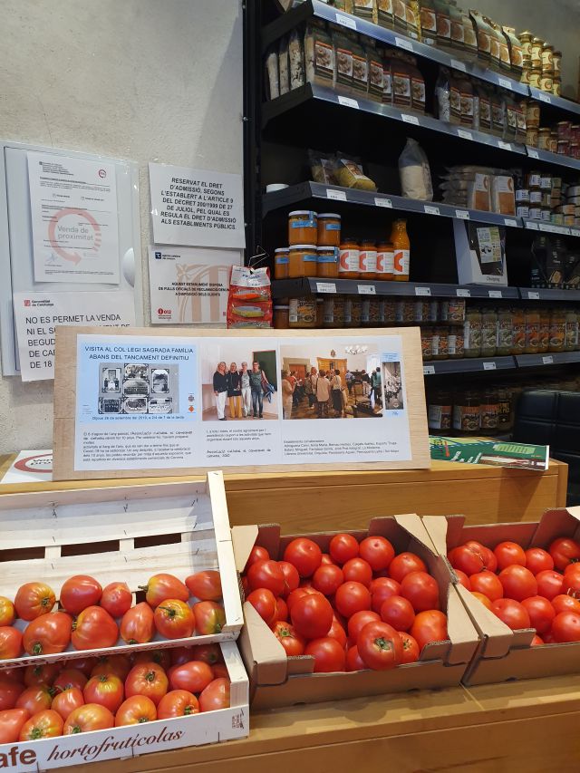 Pastisseria Agustí. Atés que només es van poder fer sis activitats de les programades i que hi havia dotze aparadors, que van funcionar com espais expositius, totes es repetien dues vegades. Aquí es podien veure més fotografies de la visita realitzada al Col·legi de la Sagrada Família feta abans del seu tancament definitiu.