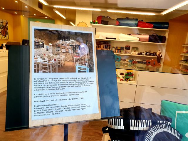 Es van exposar fotografies de les sis activitats de celebració del 10è aniversari que s’havien pogut dur a terme i la mostra es va vehicular a través de diferents aparadors d’establiments de Cervera. D’aquesta manera tothom que mirava l’aparador gaudia amb les fotografies i, algú, anant a mirar les imatges també aprofitava per veure els objectes que s’exposaven a l’aparador.