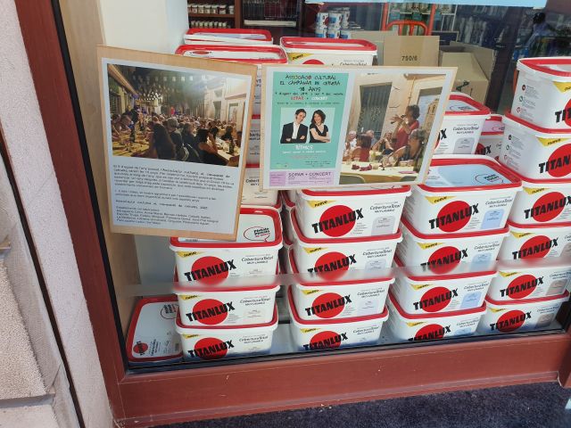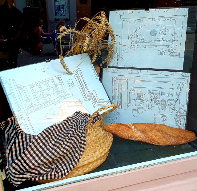 Ecoperruqueria Lidia Natural. En aquest aparador s’hi van exposar tres dibuixos que Ton Granell havia fet quan es va inaugurar el Museu del Pa, un espai situat a l’interior de la Cafeteria el Campanar que sempre és visitable. Sol·licitant el catàleg, que explica tots els elements que hi ha, s’hi pot fer un interessant recorregut.
