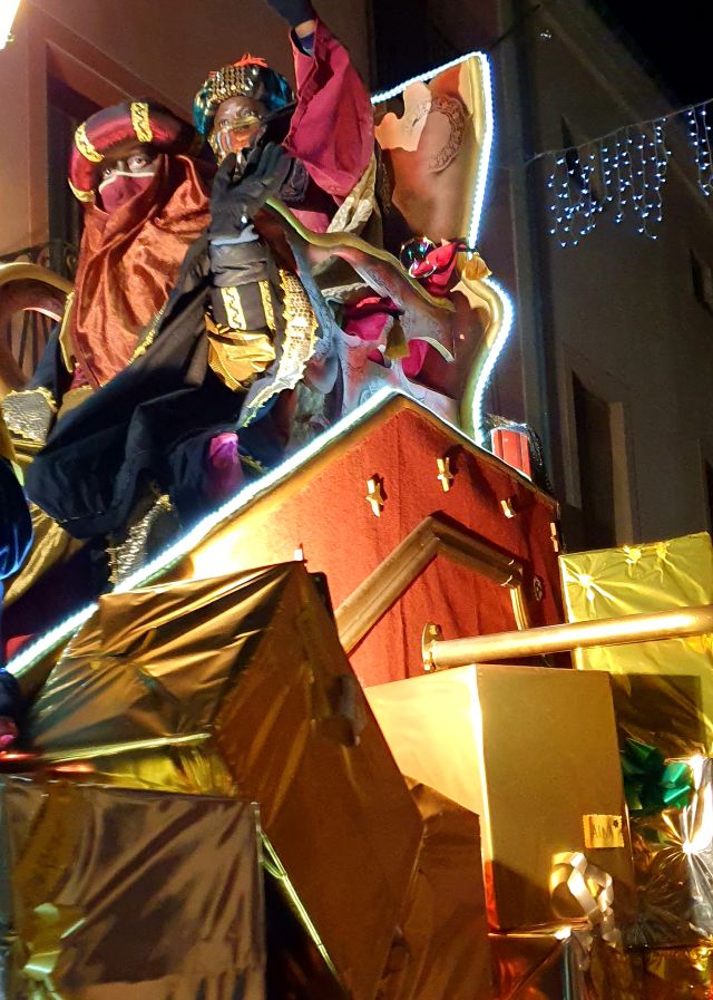 Els tres Reis, acompanyats dels seus patges, feien molt goig tan ben abillats amb les robes de colors. Les mascaretes, tan necessàries, afegien un plus de sentiment i de irrealitat al conjunt.
