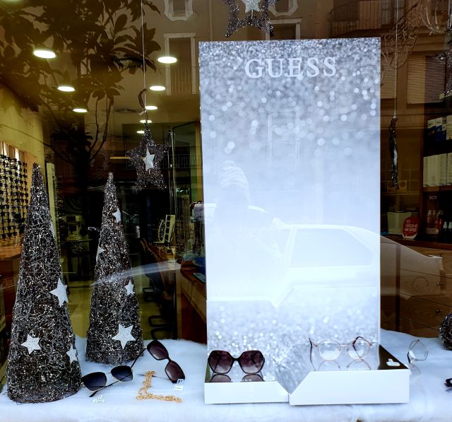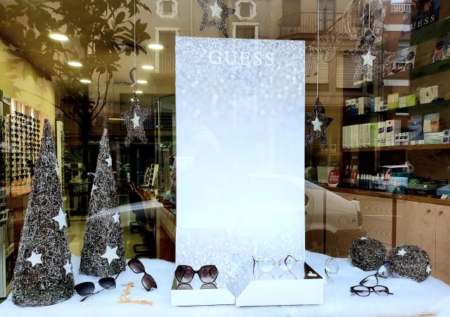 Òptica Riera va decorar el seu aparador amb tons platejats, cosa que feia que lluís molt elegant. El protagonitzava un mural dedicat a una marca d’èxit.