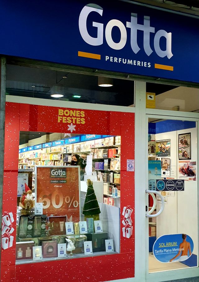 Perfumeria Gotta. Ja oferint descomptes. Fa uns anys ens hauria sorprés, avui en dia és una realitat.