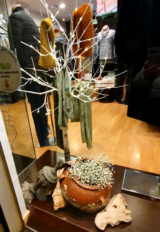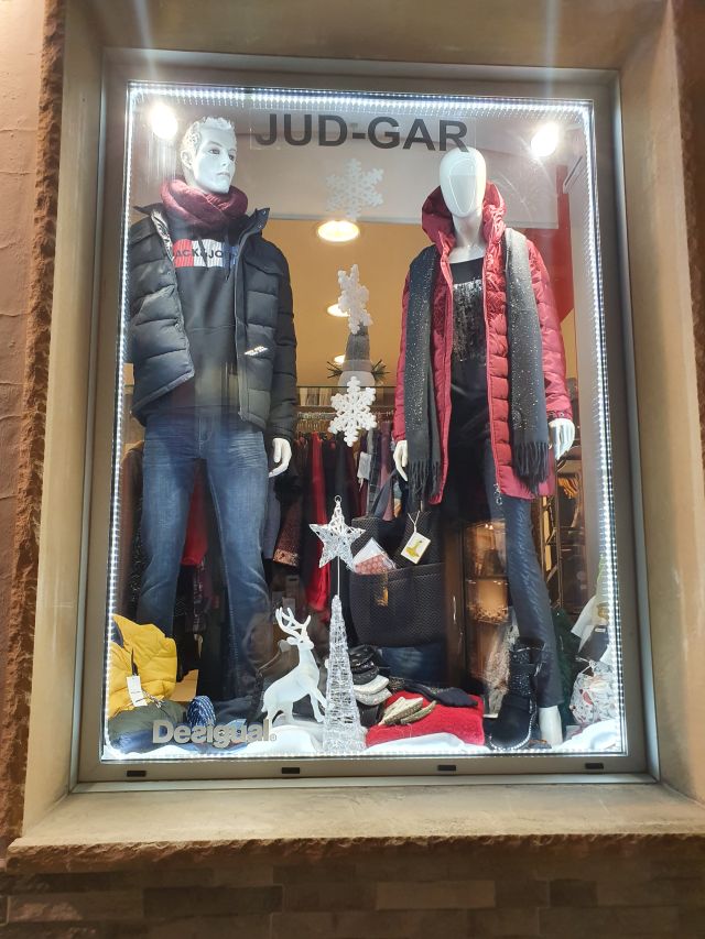 Jud-Gar. Molt bonica l’entrada de l’establiment i, als aparadors, els elements decoratius donen realç a les peces de vestir.