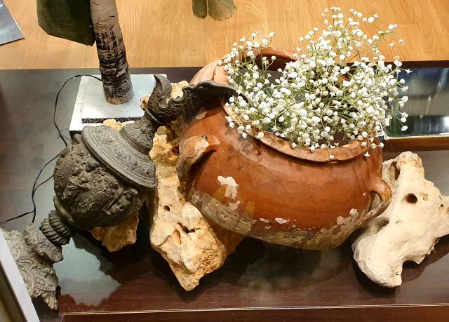 Observeu a la dreta, a la part de baix, on es pot veure una altra composició amb objectes com trobats en unes exacavacions.