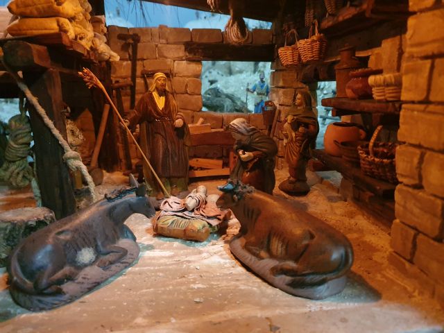 La cova, en aquest cas situada en una fusteria, representada per la família i els dos animals, tenia tot el protagonisme.