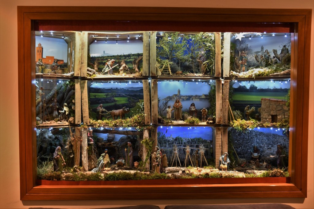 Les dotze escenes, cadascuna en una caixeta, estaven col·locades davant d’un finestral.