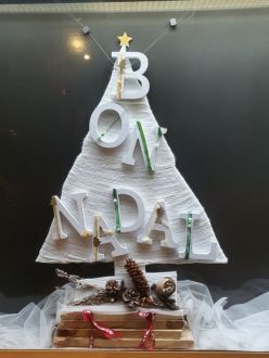 Seguim visitant establiments de Cervera mirant especialment la decoració dels aparadors, vestits de festa. Finques Fumàs acostuma molt anys a decorar els seus expositors per aquestes festes. Els elements decoratius estan fets manualment i el resultat és molt atractiu. El disseny dels fulls de paper que reforcen la decoració estan molt ben triats. A l’nterior, dins les oficines, també s’hi troben més elements decoratius que segueixen el mateix estil i el fet manual dels anteriors. Tot un èxit. Els apardors […]