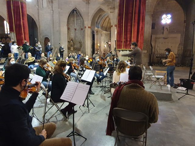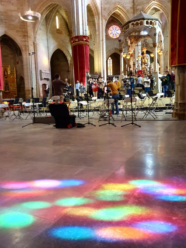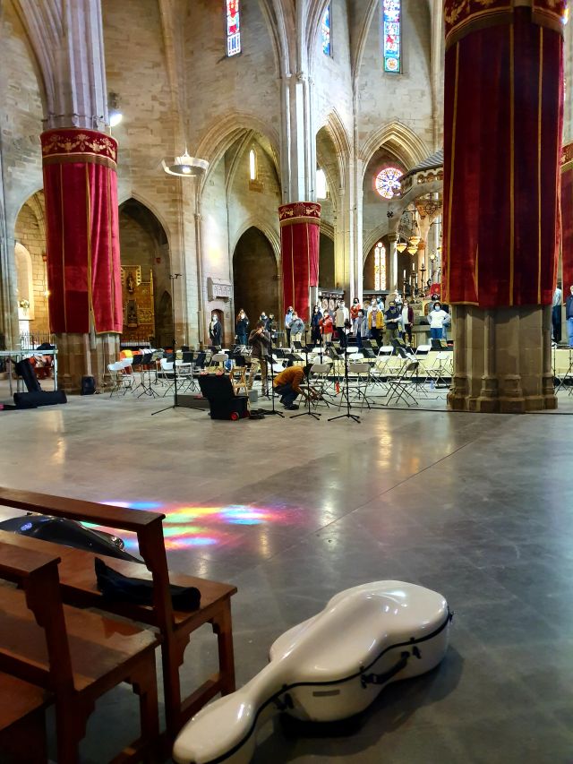 Aquest enregistrament va tenir lloc el diumenge 31. El primer assaig es va fer al matí. El podreu veure en les properes imatges. Es va iniciar amb els components del cor, tots amb vestits de carrer, i es va continuar quan s’hi va afegir l’orquestra.