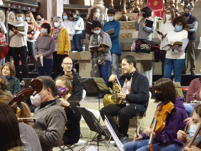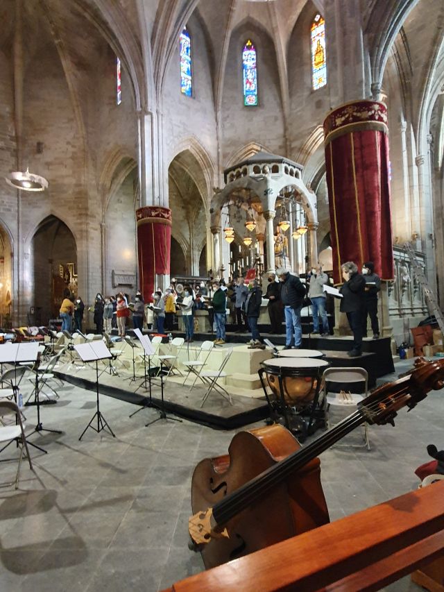 Amb les mesures anti Covid el nombre de participants s’ha hagut de reduir al mínim. Han estat els menbres de la Coral Ginesta els que han posat les seves magnífiques veus per tal que totes i tots poguem gaudir amb les Completes. Els músics, fonamentals, si que hi eren al complet. El director de sempre, Xavier Puig ha tingut cura de que tot anés perfecte i de que l’enregistrament fos un èxit.