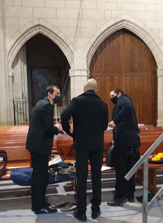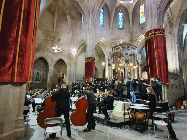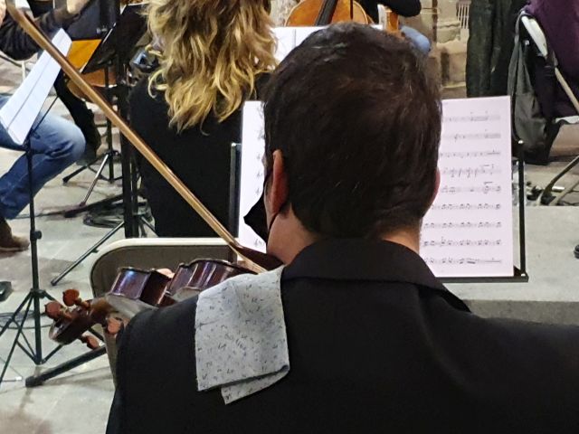 Aquí es veu bé el que comentava abans. Els músics que tocaven els instruments de vent segueixen les indicacions del director, sense mascareta.