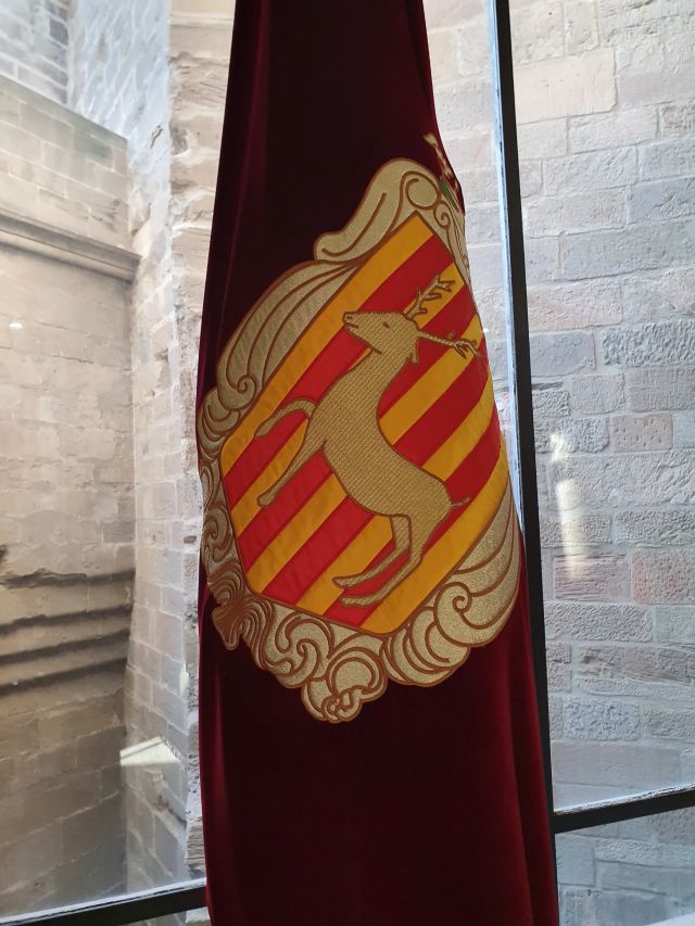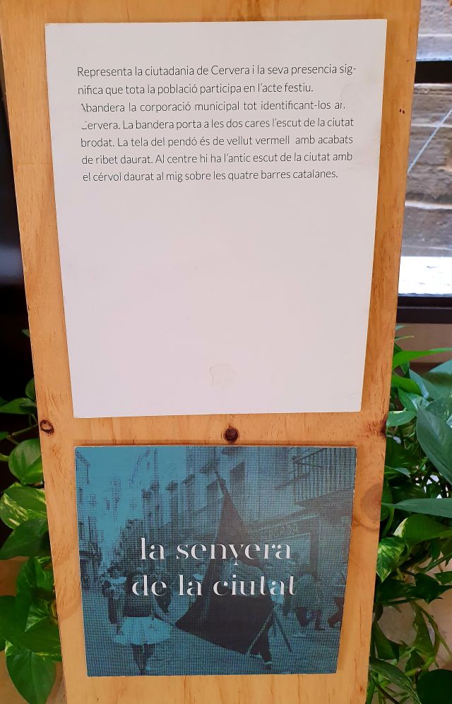 La Senyera de la ciutat. Cadascun dels elements va acompanyat d’un cartell explicatiu.