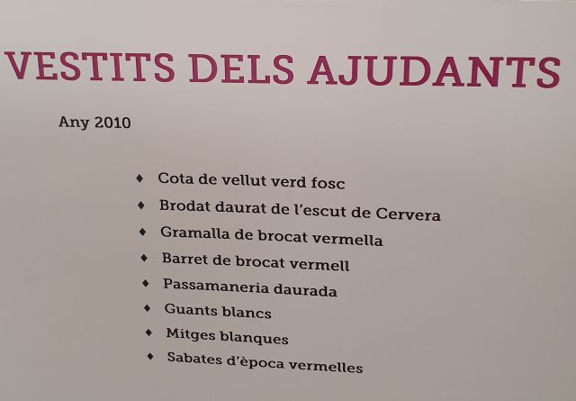 El blog segueix informant sobre la Festa Major del Santíssim Misteri. En aquest post podreu veure una part de l’exposició dels Elements festius municipals que es podia visitar al vestíbul de la Paeria. Aquest magnífic conjunt de peces de vestir i d’objectes es fan servir durant el Seguici que va des de la Paeria fins Santa Maria just abans de l’inici de les Completes. Cada any, són els membres de les diferents entitas cerverines els que tenen l’honor de portar-los.