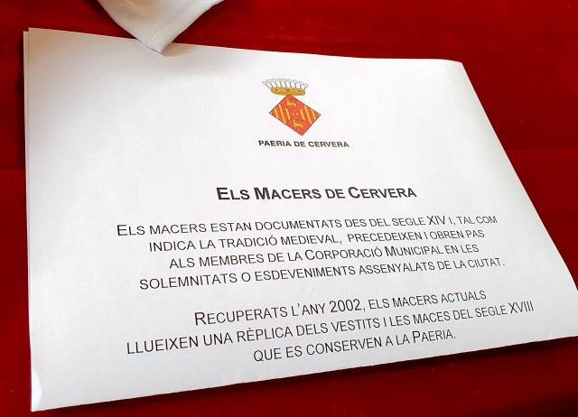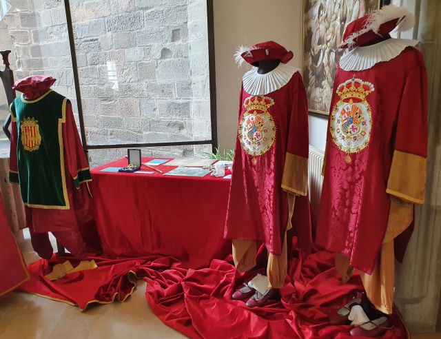 Aquestes dues fotografies són molt interessant ja que en elles hi veiem els Macers. Els vestits que es poden veure en aquesta exposició són de nova confecció. Tot el que queda d’objectes i vestits antics està exposat d’una manera permanent a la gran sala de reunions que hi ha a costat del vestíbul.