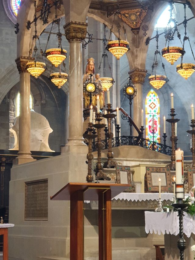 Mentre tenia lloc la segona part de la cantada de Caramelles, a les 12, a Santa Maria començava la misa de Pasqua.